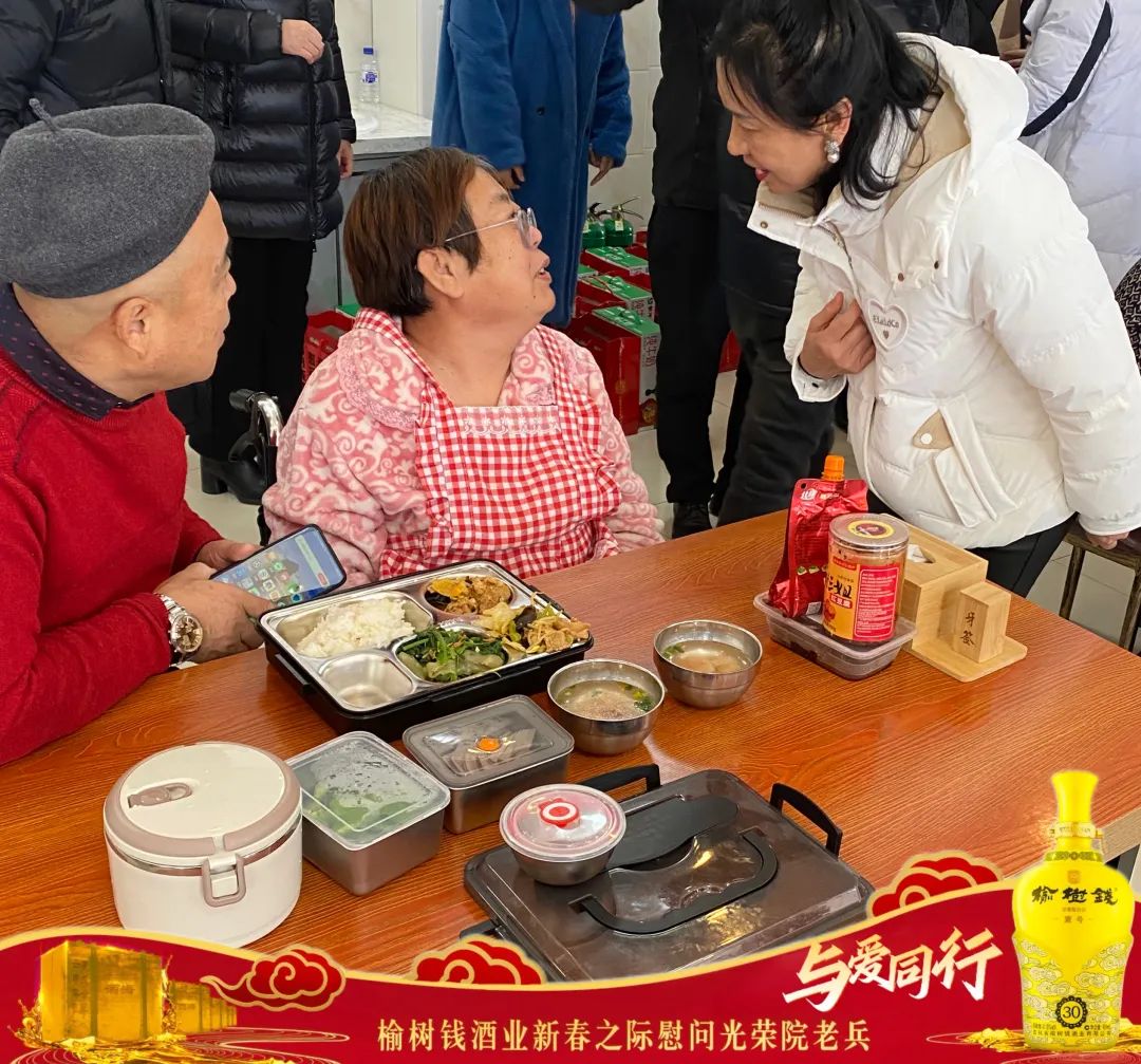 在餐厅里,大家将精心准备的慰问品送到了每一位老兵和军烈属的手中。礼品虽轻,但情意重。老兵们的脸上露出了笑容,眼中闪烁着激动的泪光。他们感慨地说:“感恩国家和政府的关怀,感谢榆树钱酒业的慰问,我们感到非常幸福和温暖。”