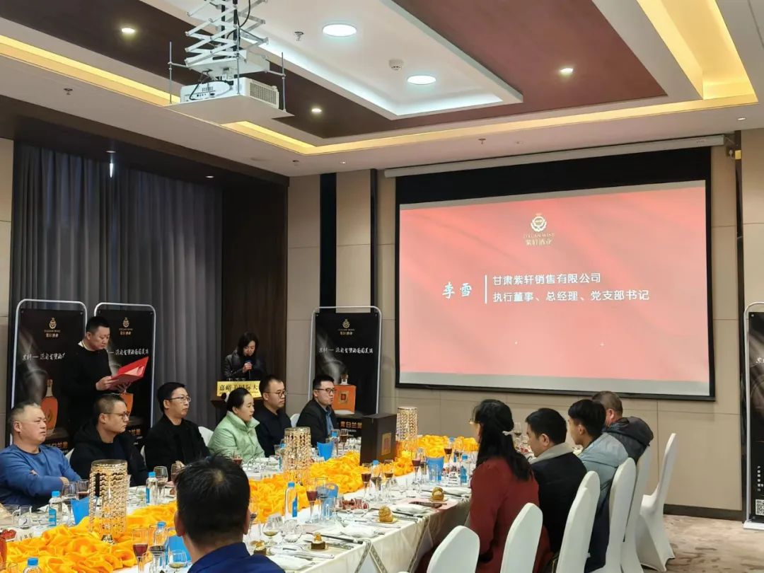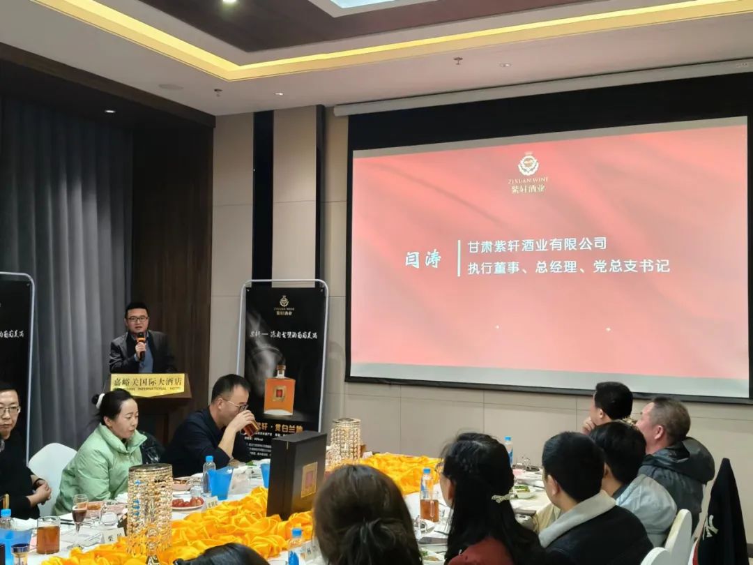 嘉酒区域的高端核心客户30余人参加了此次首场新品发布暨品鉴会。甘肃紫轩酒业有限公司执行董事、总经理闫涛出席活动并致祝酒词,他代表甘肃紫轩酒业有限公司对与会嘉宾表示了热烈的欢迎,并向各位嘉宾介绍“紫轩”将强化营销能力、提升服务质量、拓展品牌效应,牢固树立红、白酒品牌区域优势地位,激发厂商合作新动能。同时,真诚的希望借助今天这个平台,让各位嘉宾能够进一步了解紫轩、认识紫轩、支持紫轩。甘肃紫轩销售有限公司执行董事、总经理李雪在致辞中表示,2023年紫轩酒业在经济下行、消费低迷的严峻市场环境,依然实现了稳中有升的可喜销售业绩。依托紫轩酒业的原料及技术优势精心研发推出的白兰地系列、有机梅尔诺及低醇葡萄酒等新产品,是紫轩酒业积极应对市场变化、适应市场需求,打造核心单品形成更多增量点和竞争优势的重要举措,并将在嘉酒、兰州等核心市场单品招商运作,加强市场投入及市场管控,深化、细化销售服务模式,致力于为消费者及合作商创造价值。