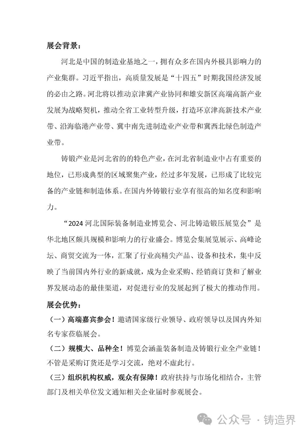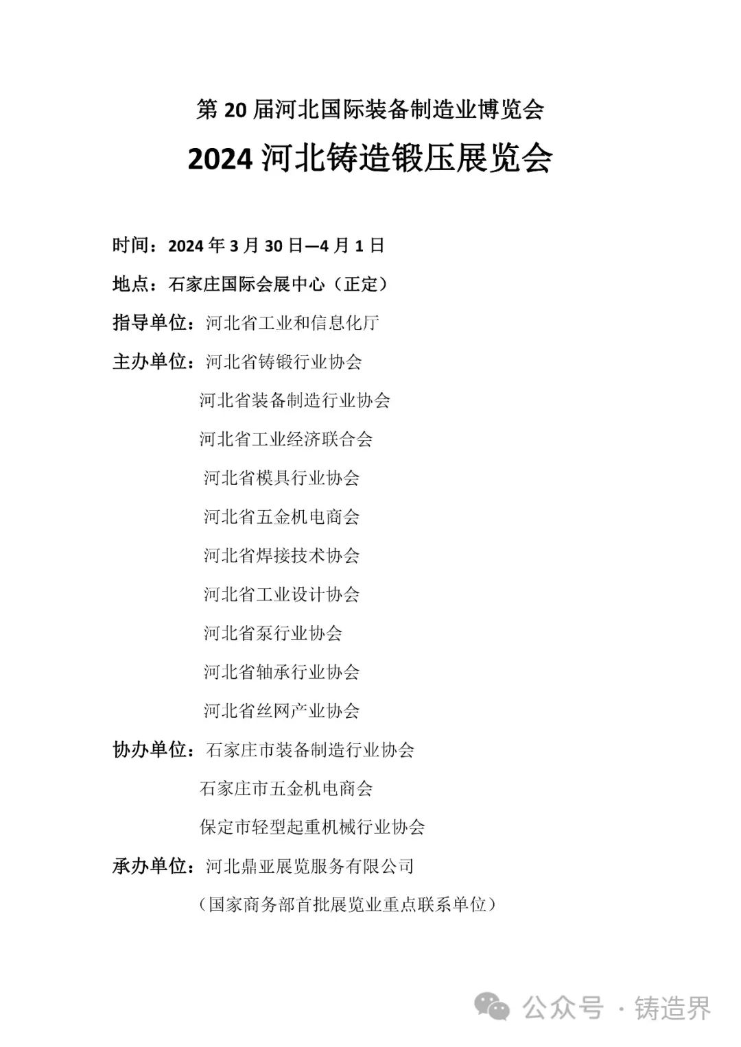 第 20 届河北国际装备制造业博览会2024 河北铸造锻压展览会