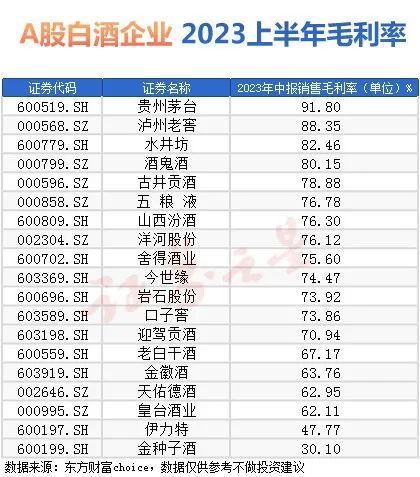 而梳理公开数据发现,目前发布2023半年报的A股白酒上市公司中(除顺鑫农业外),毛利率低于60%仅伊力特和金种子酒两家。
