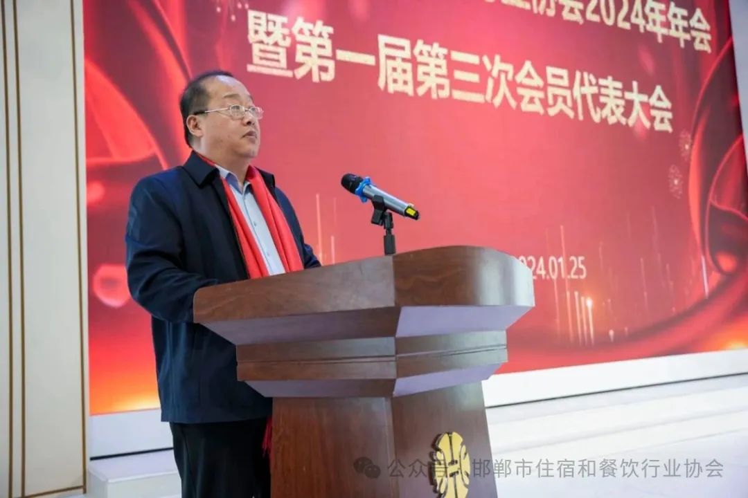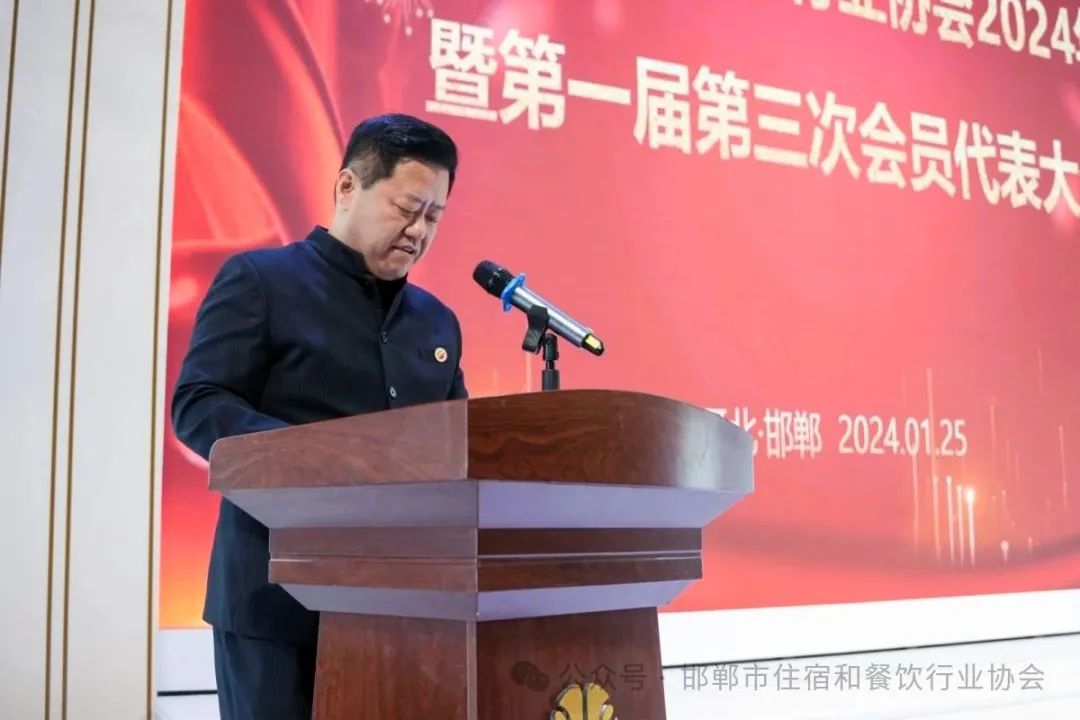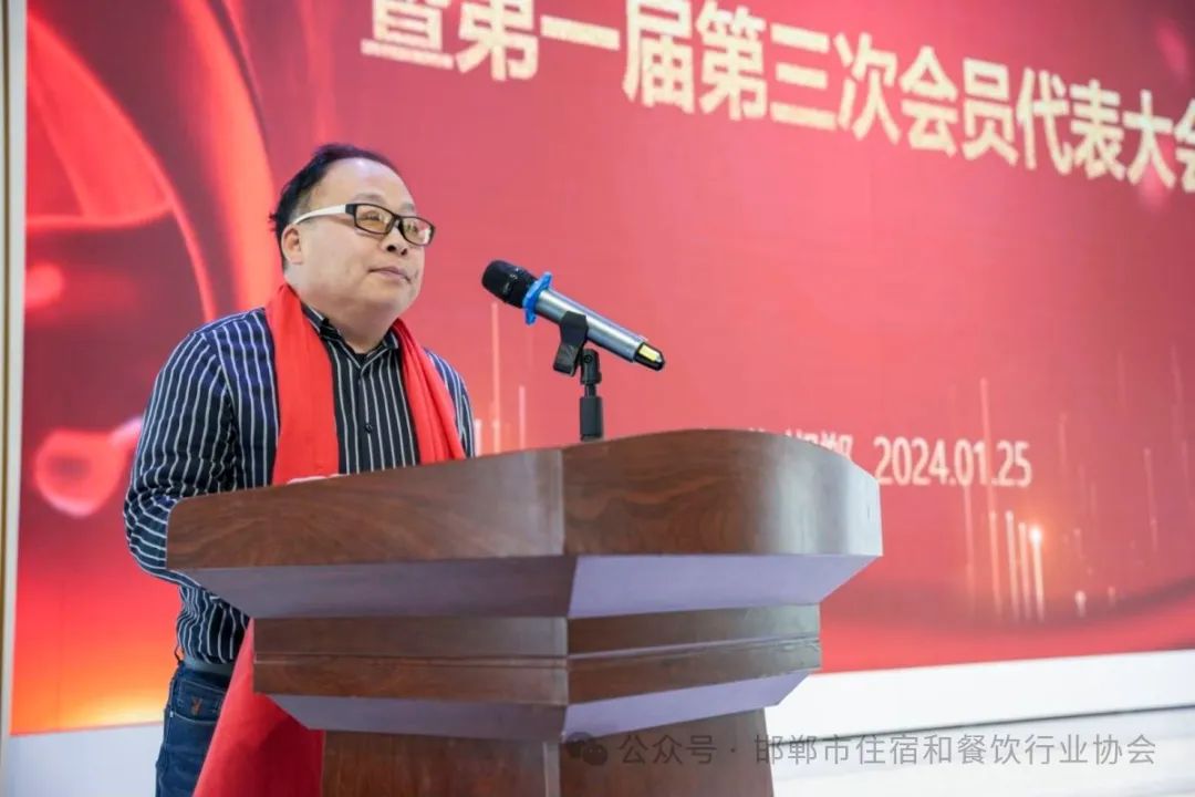 协会会长赵亭作2023年度工作报告,对去年工作进行了全面总结,详细介绍了协会在过去一年中所取得的成绩和面临的挑战,并对今后工作进行了认真部署。他表示,当前餐饮行业正处于全面复苏,快速发展的关键时期,需要加强创新、提高服务质量、拓展市场空间,才能实现可持续发展。2024年协会将继续加强党建引领工作,提升协会组织管理能力,加强与政府部门的沟通与合作,为会员提供更多的服务和支持,加快推进邯郸菜传承、研发及宣传推广工作,整体提升我市住宿和餐饮行业服务水平,继续坚持“引领行业发展,助力企业创新”理念,推动我市住宿和餐饮行业快速健康发展。