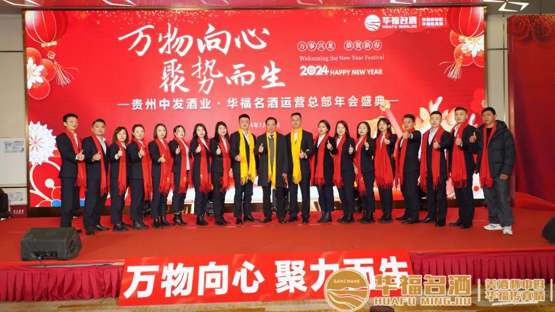 中发酒业华福名酒总经理李丛带领公司中层管理人员及嘉宾共赴年度盛宴,庆祝华福名酒2023年的累累硕果,展望2024年的全新征程,鞭策华福名酒人以饱满昂扬的姿态为中国贵州酱酒事业发展奉献新的力量!
