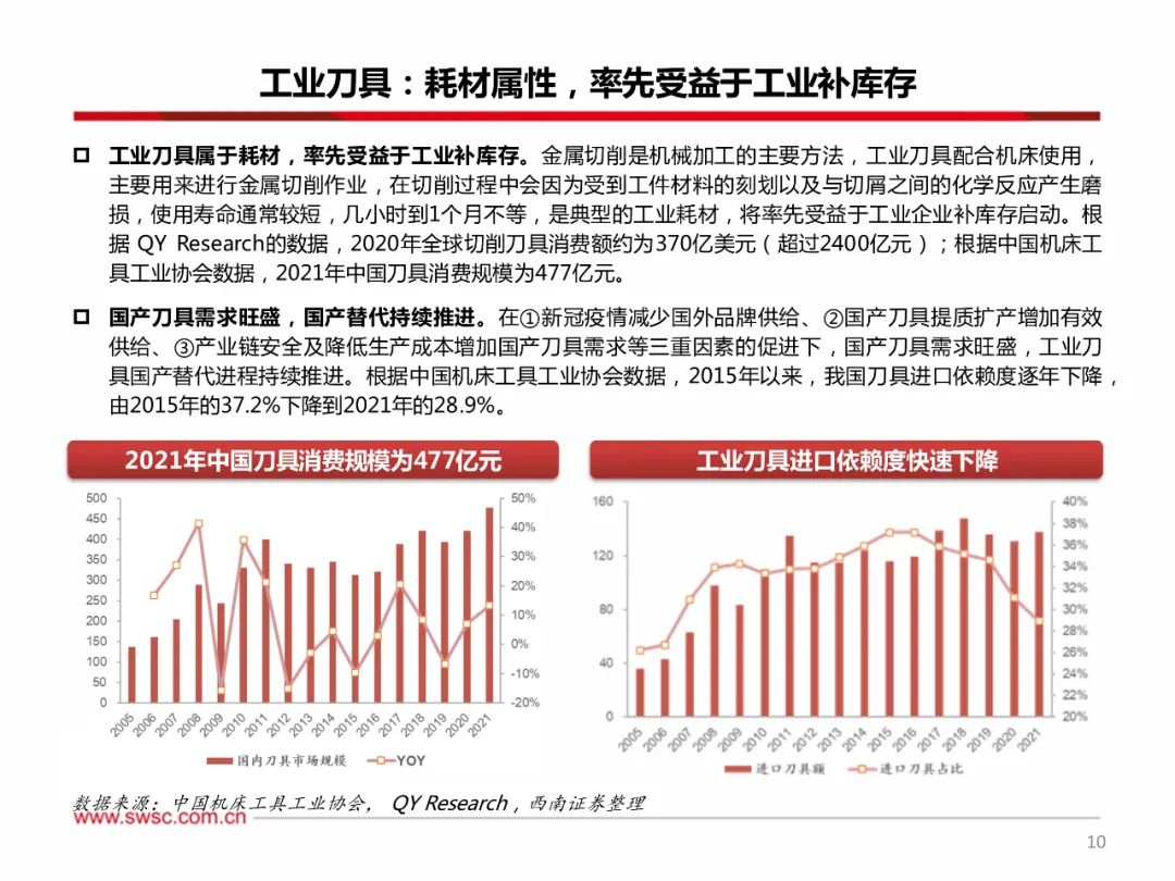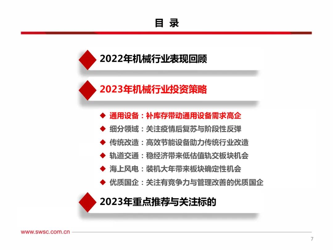 制造业需求边际改善,通用设备在补库存阶段中需求高企,建议重点关注以刀具机床为首的通用设备在2023年的板块性机会