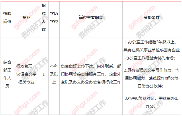 贵阳 | 白云农投运营发展集团有限公司2024年招聘1名综合部工作人员(报名时间:1月27日至31日)