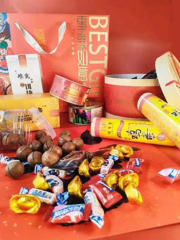 糖果2袋、饵块2个、面条2把、八宝罐头1个、千张肉罐头1个、坚果1盒