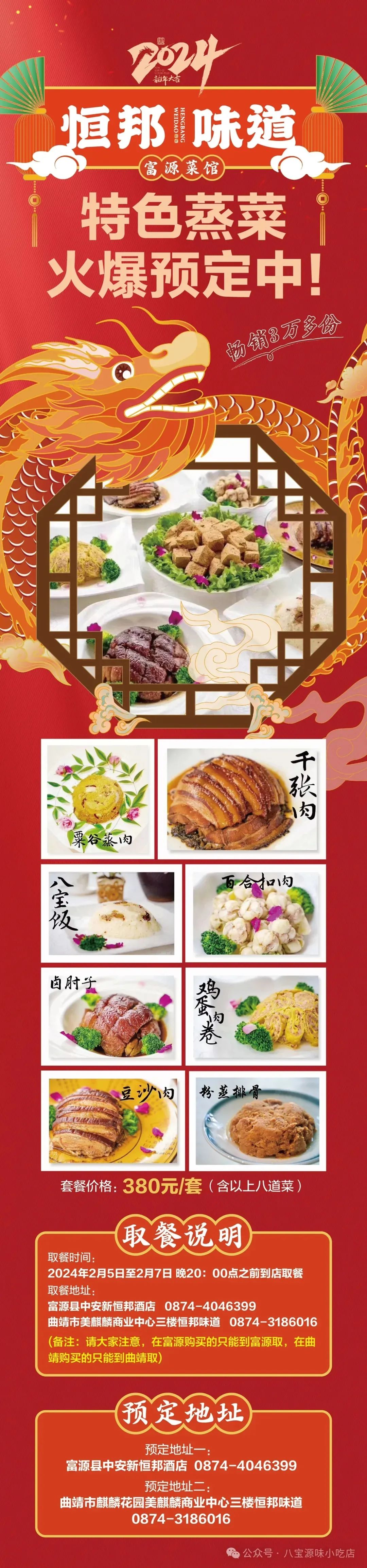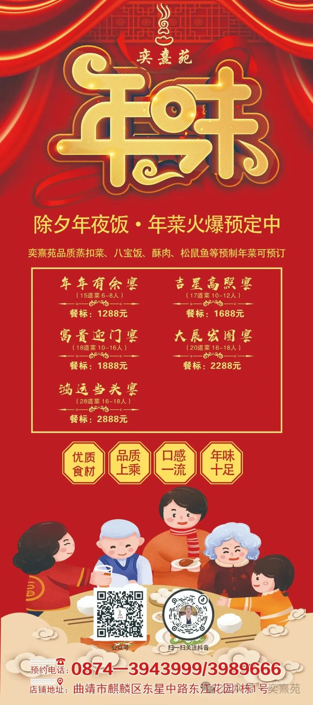 龙年春节将至,为满足广大市民对“年夜饭”、“年货”的消费需求,让广大消费者过个健康安乐、团圆祥和的春节。曲靖市餐饮与美食行业协会优选出一批餐饮企业,推出了年夜饭套餐及菜品,为广大消费者提供年夜饭消费指南。