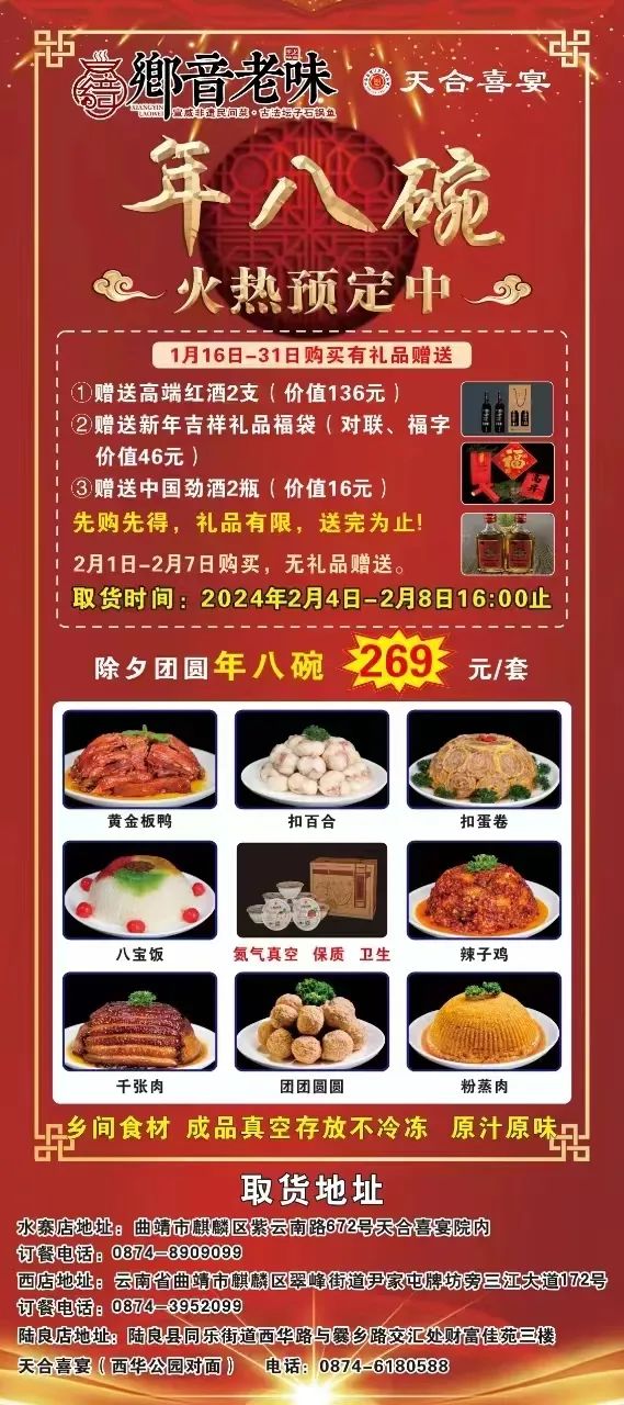 宣威为君开扣八碗年夜菜298元/套(不含配送费)