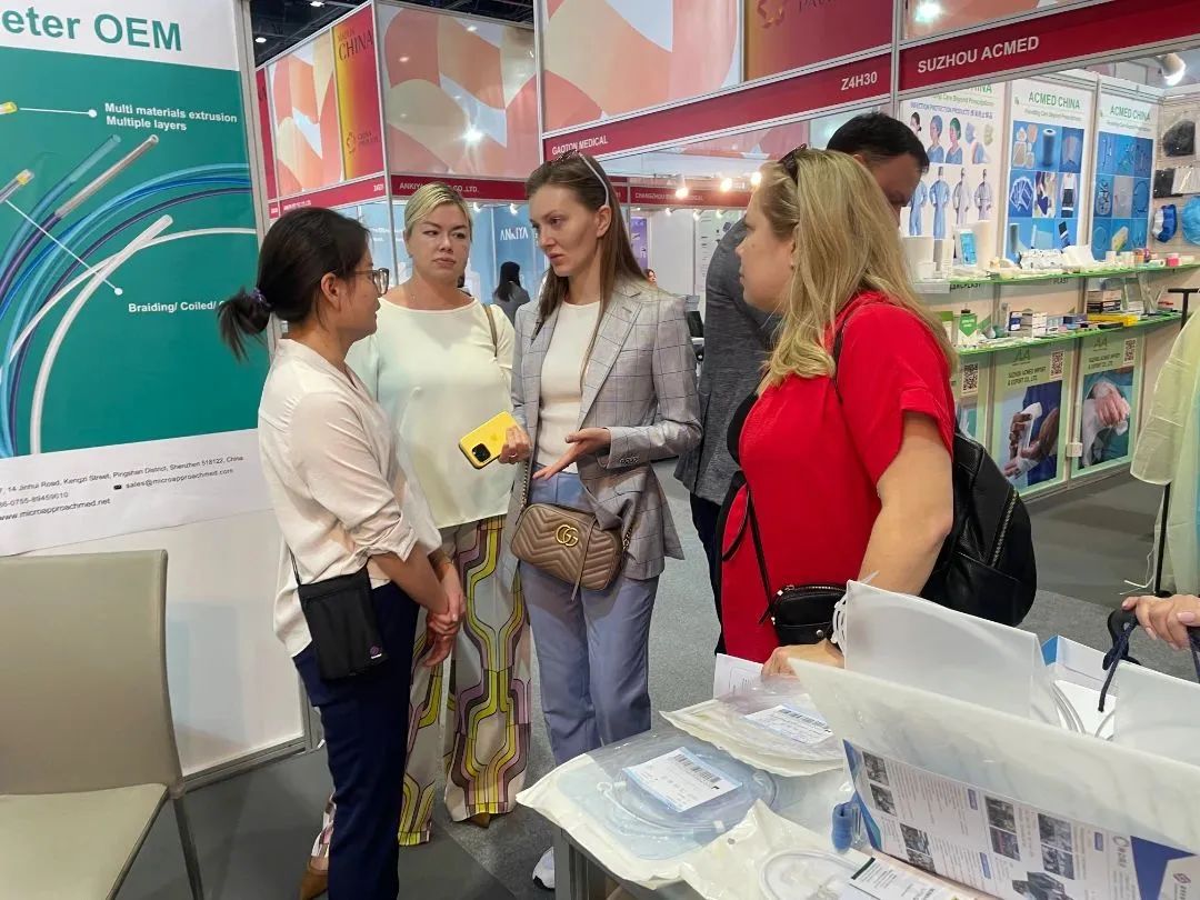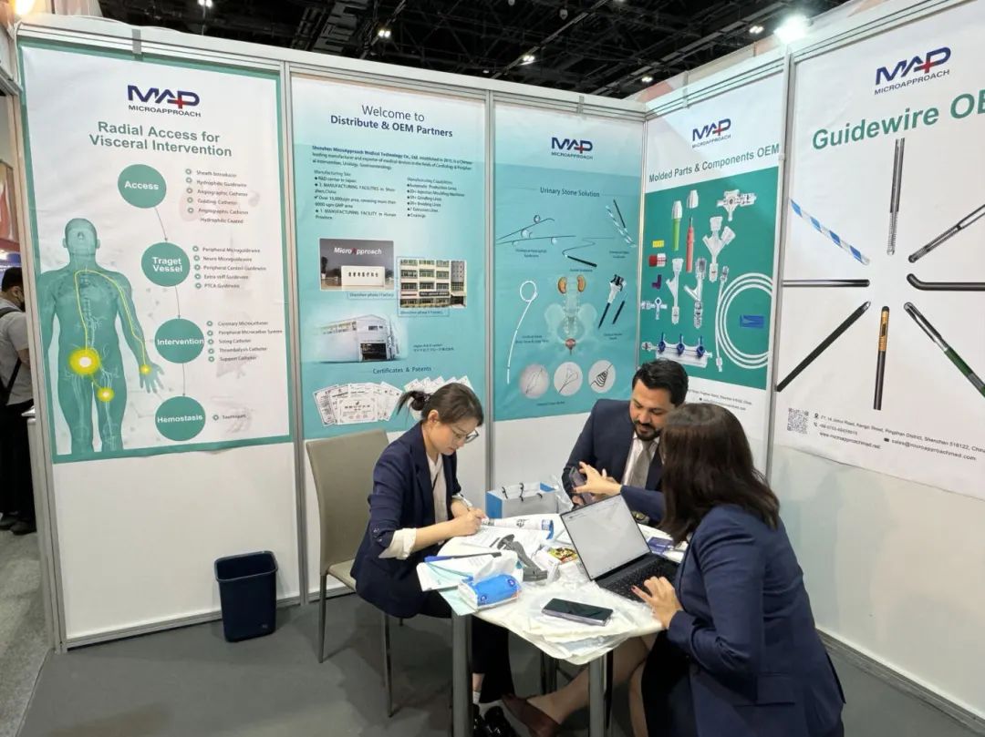麦普奇注重产品品质与技术高标准要求,生产产线实现高精度自动化,为全球客户提供OEM/ODM合作服务。首日展台观众络绎不绝,在麦普奇海外小伙伴的热情接待和专业介绍下,众多客户纷纷表达了渴望合作的意愿。植根中国,放眼全球,麦普奇医疗自成立之初起便放眼全球市场的拓展,开启一次又一次海外征程。产品远销印度、日本、巴西、韩国、伊朗、俄罗斯等20多个国家,并与全球知名医疗器械企业开展良好的战略合作,国际品牌影响力持续攀升。展会现场,麦普奇医疗与客户进行广泛接触,就产品性能、临床应用、合作方式与市场需求等方面进行了深入探讨交流,也与多家国际知名客商达成技术交流、战略合作意向,进一步巩固了产品及品牌在中东、北非、欧洲和亚洲地区的市场影响力。