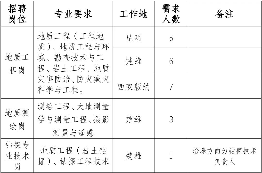 2.专业要求:地质工程、岩土工程、勘查技术与工程等地质类相关专业。