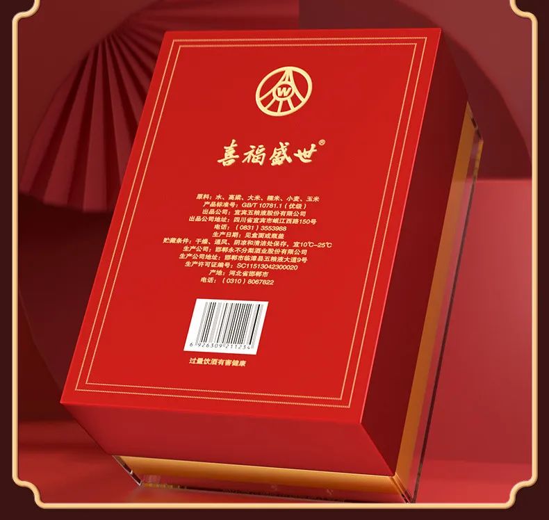 这款五粮液喜福盛世白酒配料表里只有 水、高粱、大米、小麦、糯米、高粱,是纯粮固态发酵 。