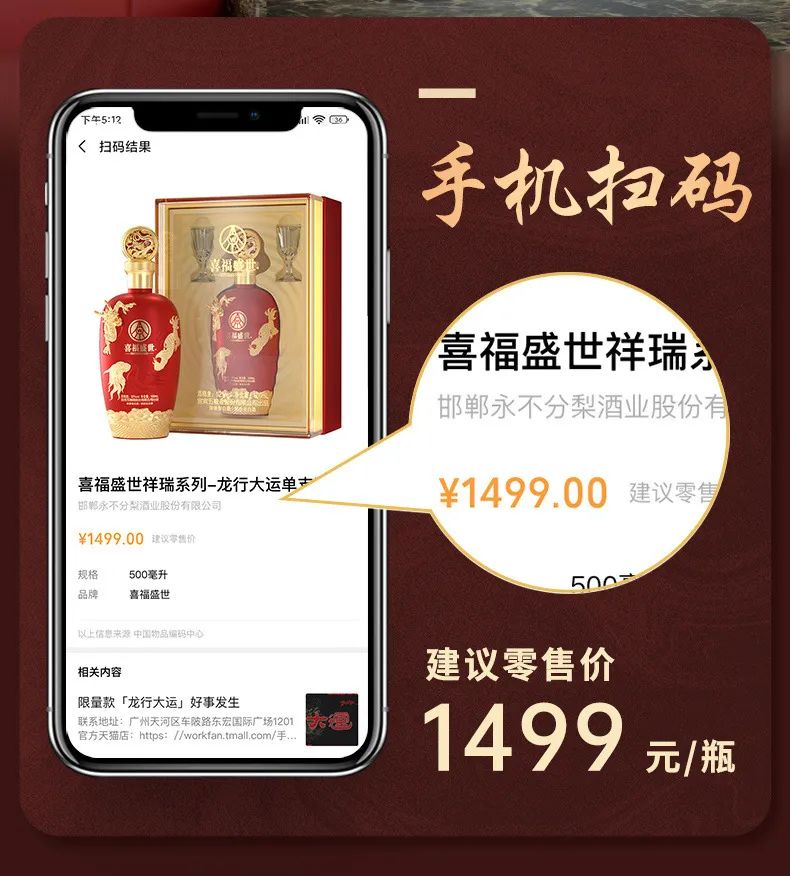 扫码价1499元/瓶 花小钱办大事,有礼有面。