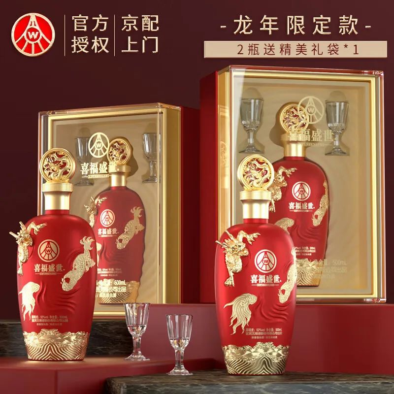 【商品名称】五粮液股份 喜福盛世 龙行大运500ml*2瓶白酒礼盒过年送礼喜酒