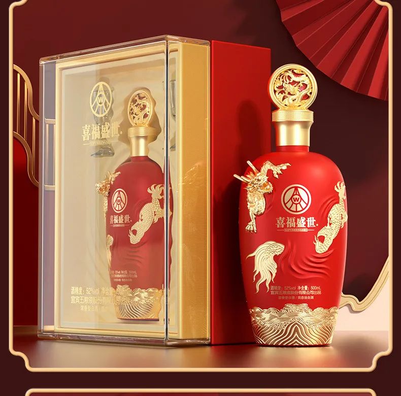 这款五粮液喜福盛世 龙行大运白酒具有酒丝成线、酒花饱满、挂杯明显等特征,酒液清澈透明,酒味醇厚甘美,柔和净爽,诸味谐调,回味悠长、空杯留香的独特风格。