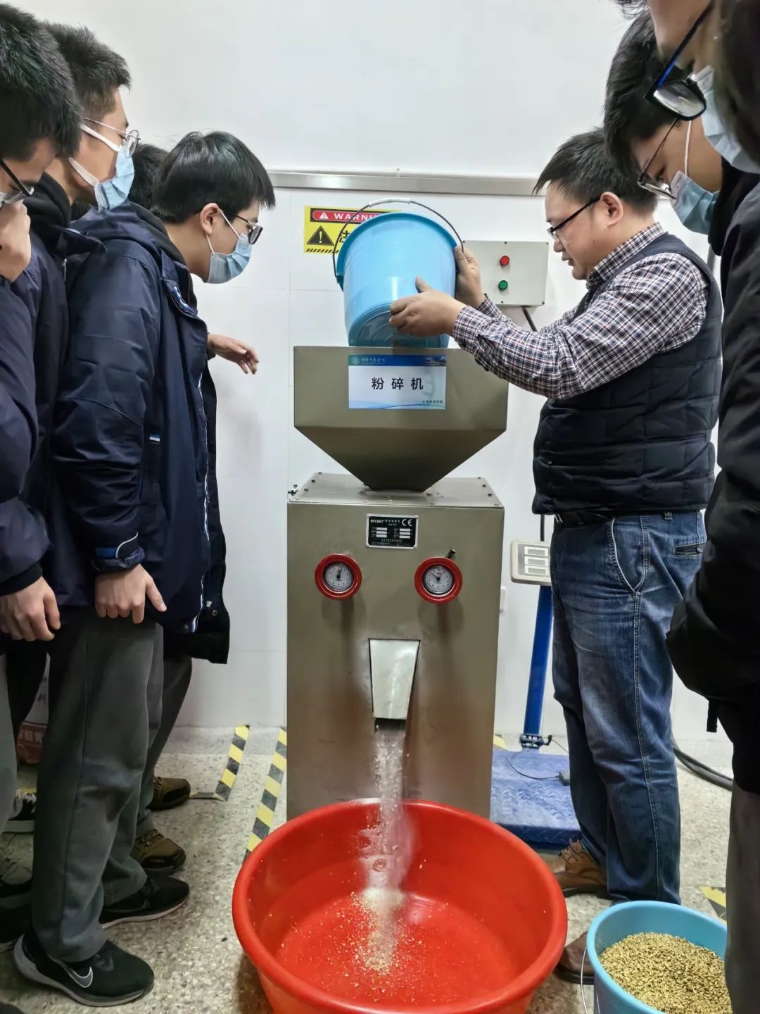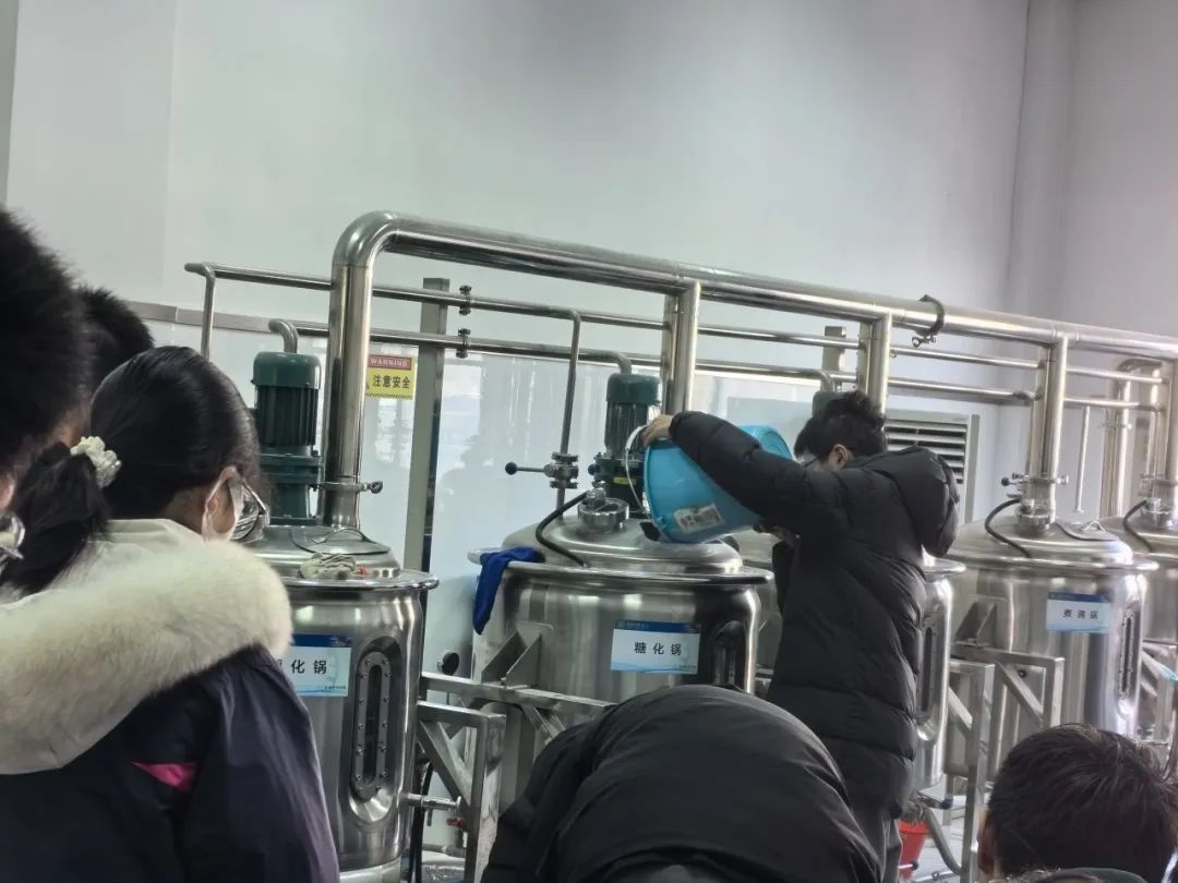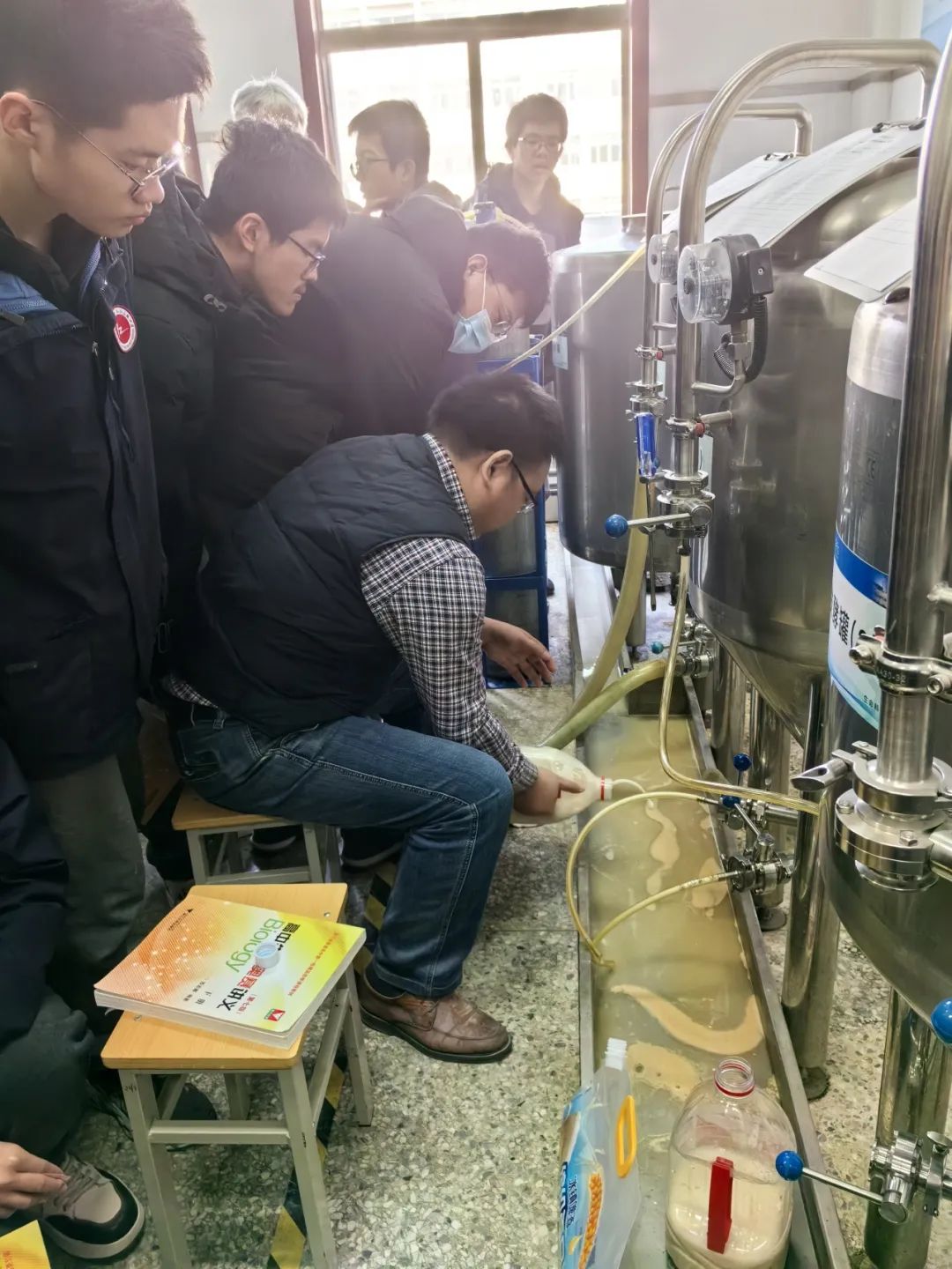 淮阴师范学院实验室配备有完善的啤酒发酵设施,为了让同学们能够亲身感受啤酒发酵过程,张博士带同学们进行啤酒发酵实操体验。