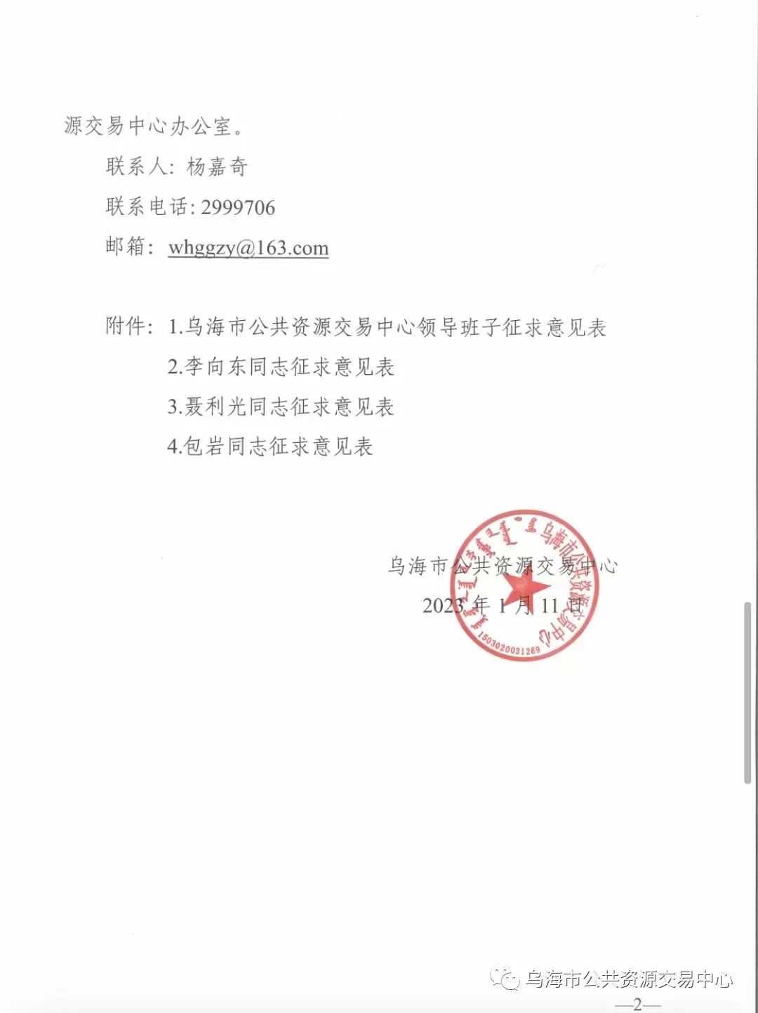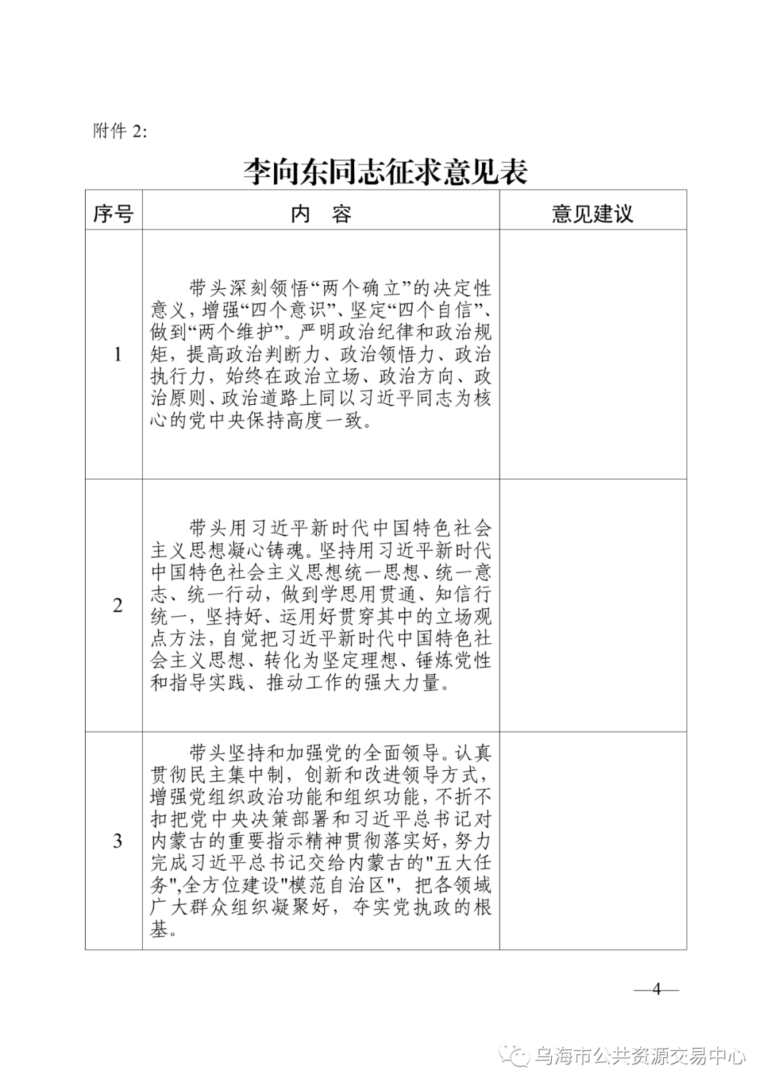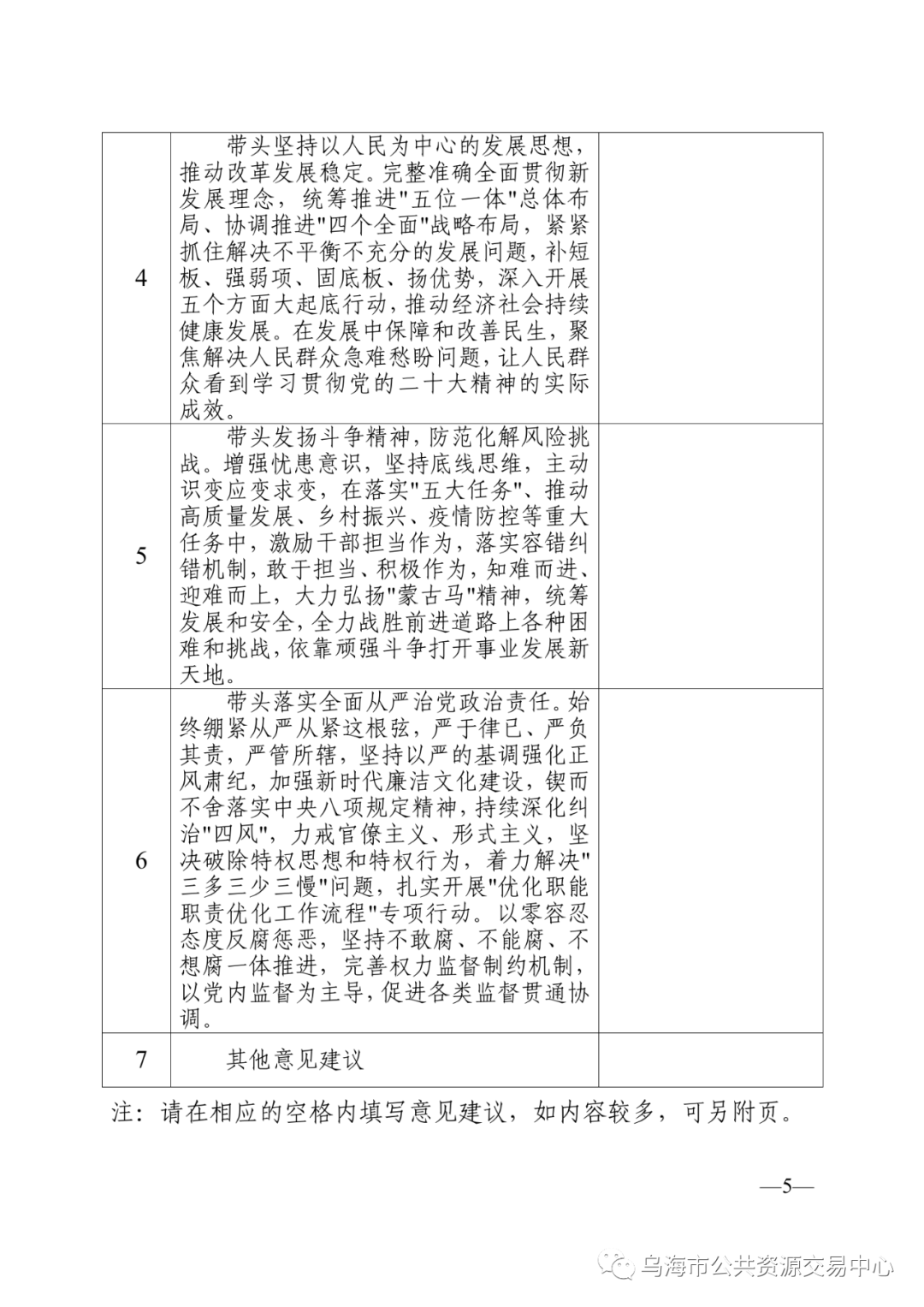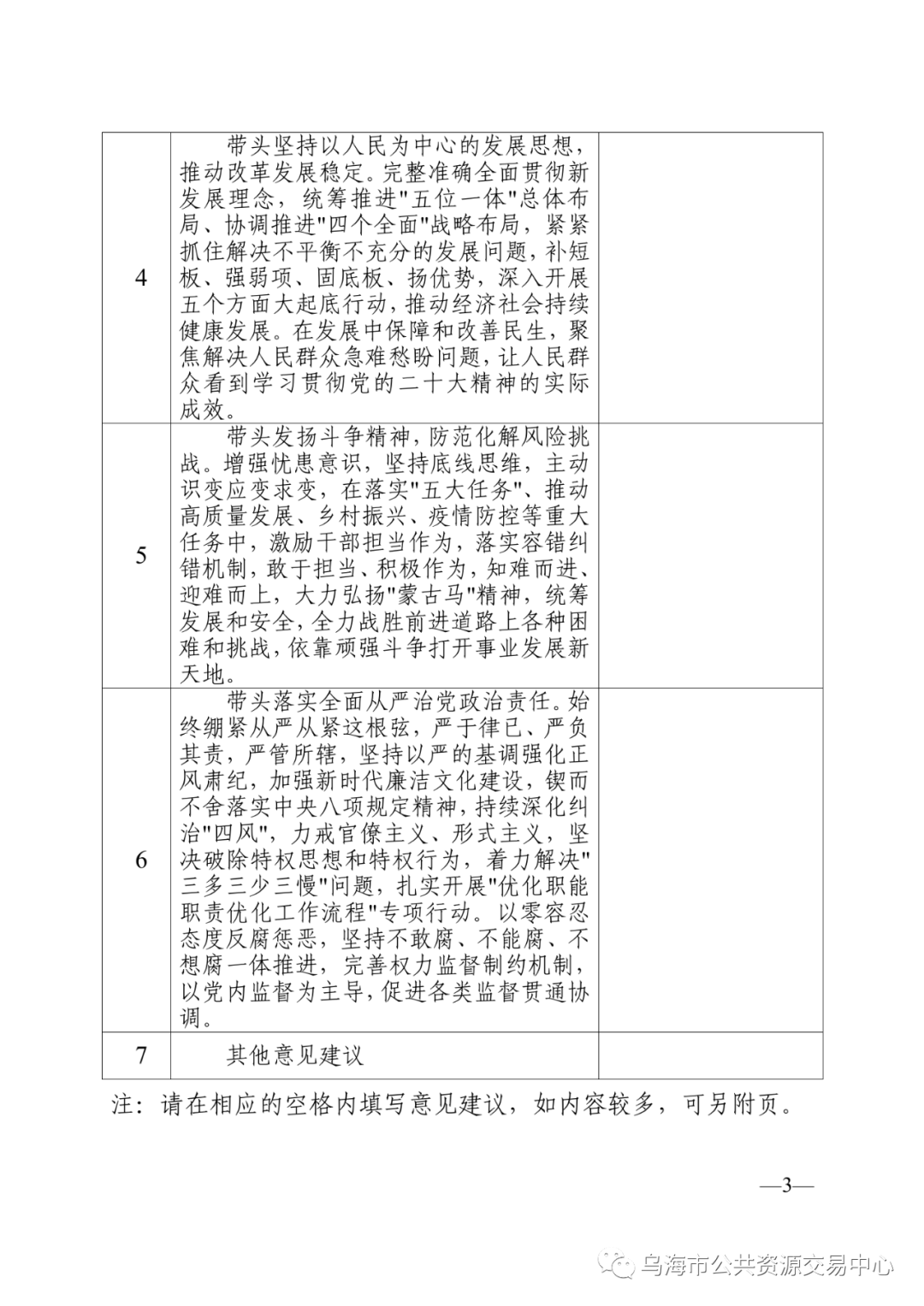 乌海市公共资源交易中心关于征求党员领导干部民主生活会意见建议的函