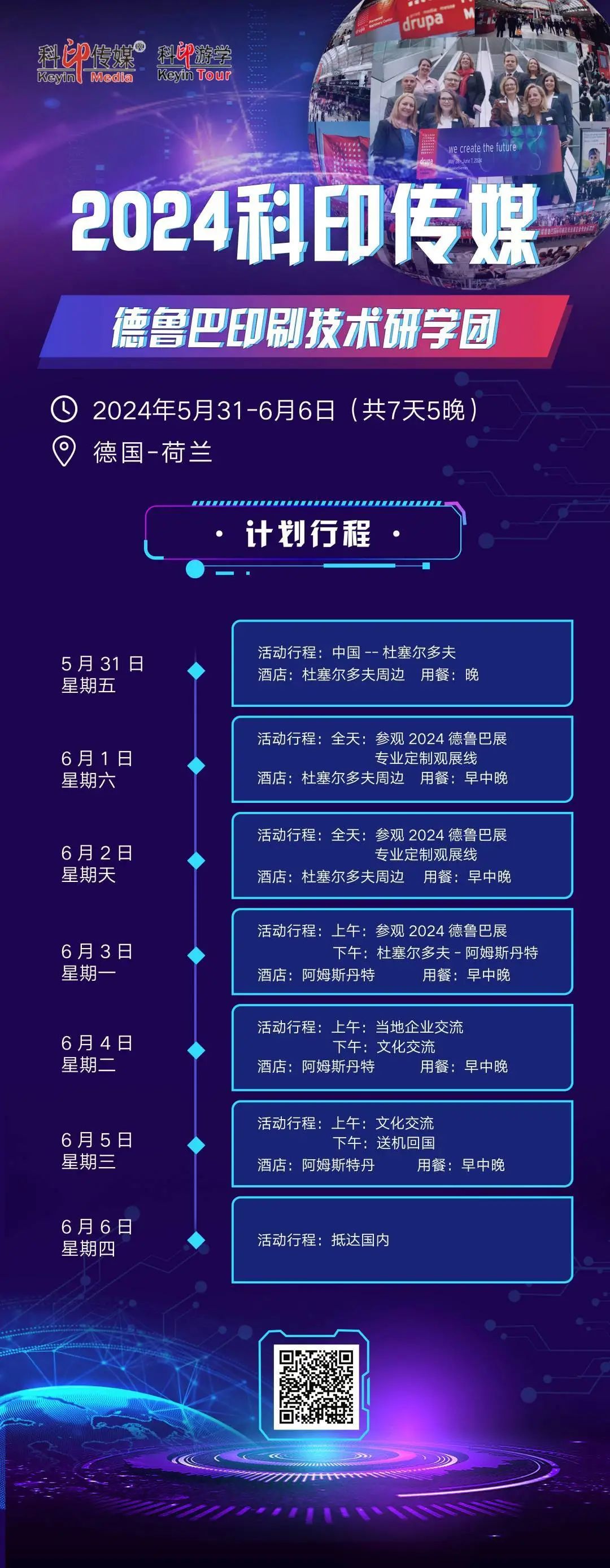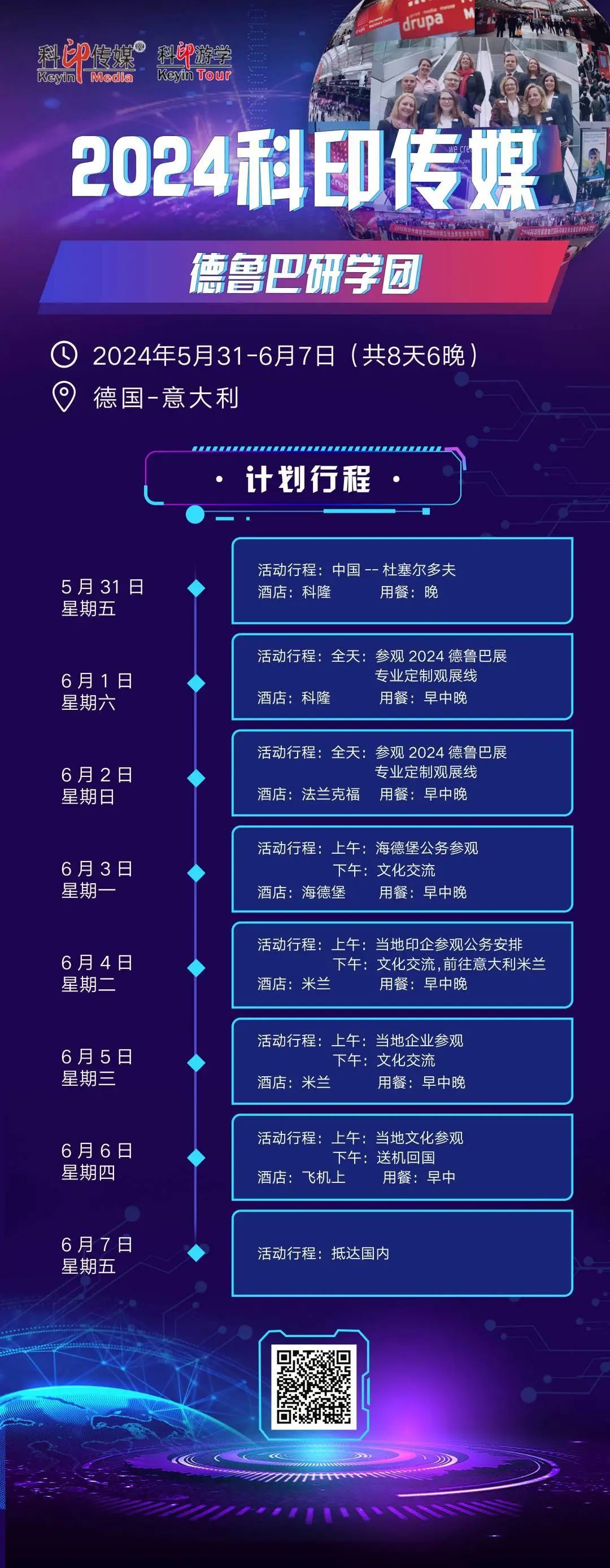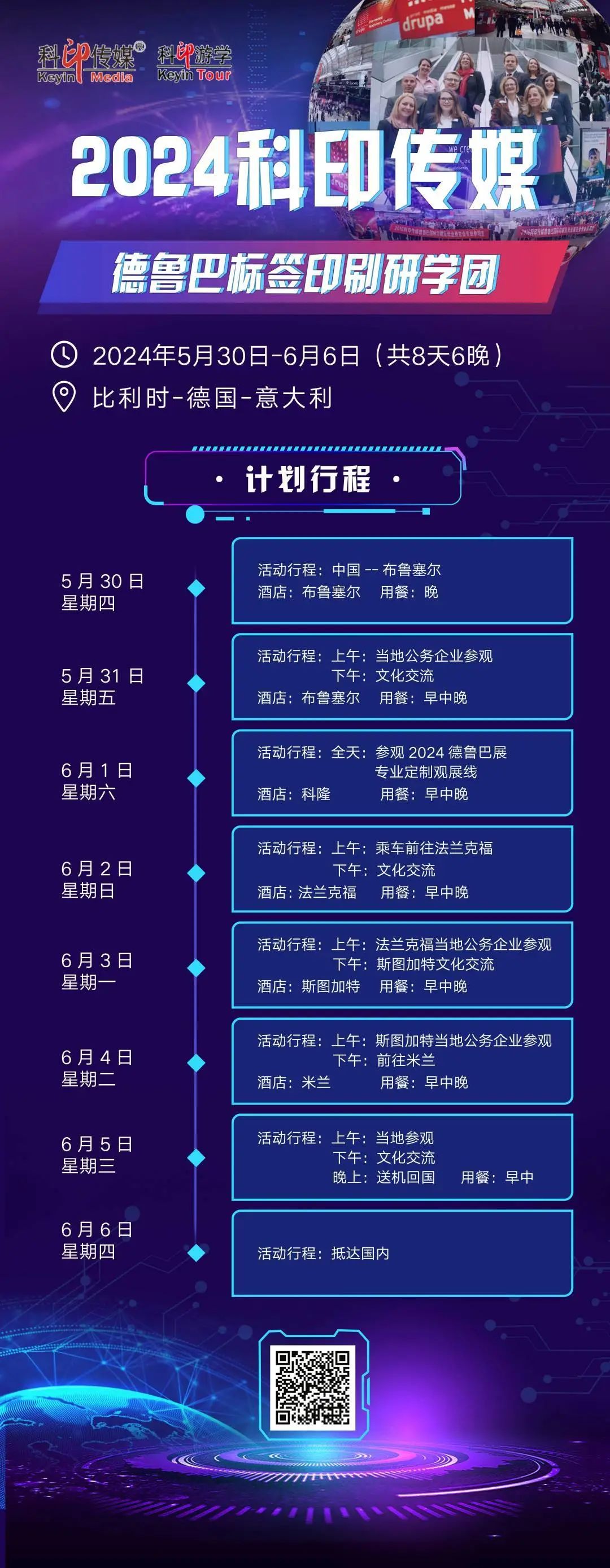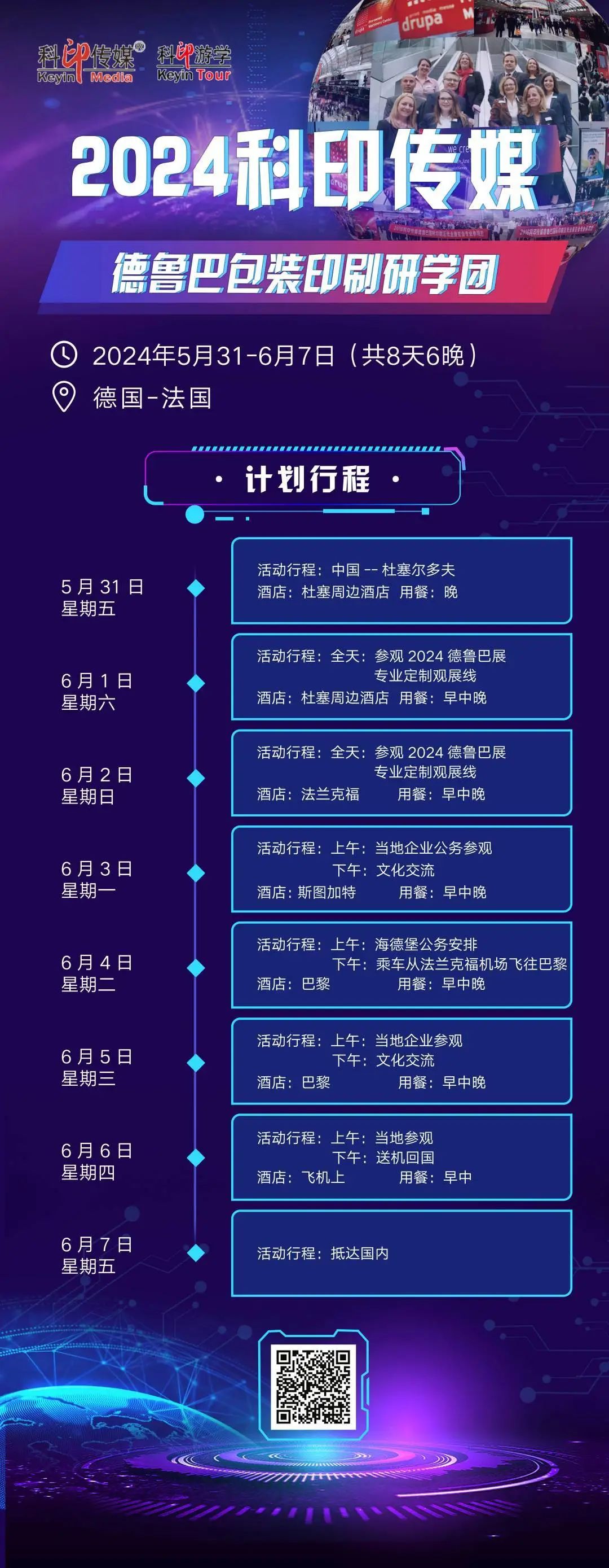 如果您也想参与其中,科印传媒将带领德鲁巴综合团、包装团、数字团、标签团和技术团五大主题研学团,17年专业组织人士带队,百人团队为您护航,专业定制德鲁展会参观路线,访问、考察欧洲当地印刷包装企业。带您深度畅游德鲁巴展会。