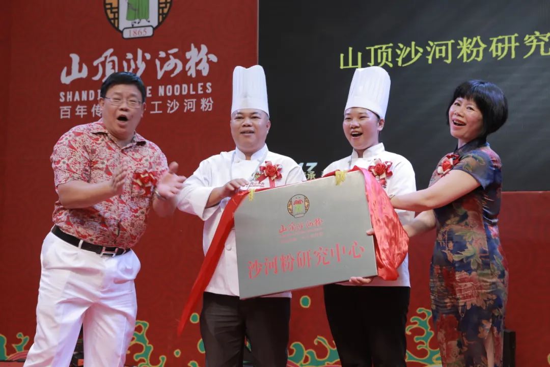 图片说明:2019年5月沙河粉研究中心成立,著名主持人郑达为罗虹、黄炳强、黄丽群颁发荣誉