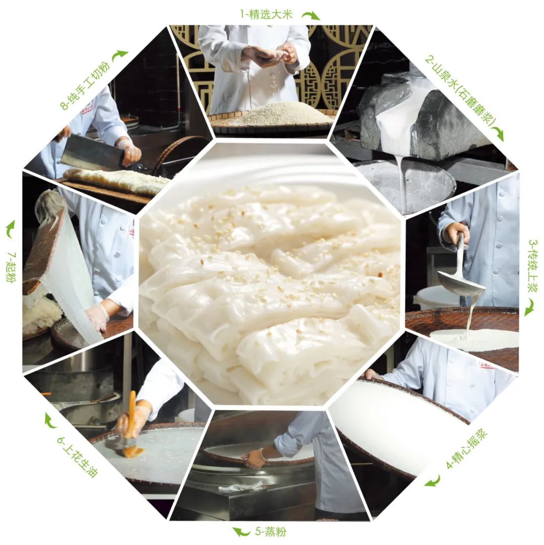 山顶沙河粉坚持选用优质稻米作为原材料,所用水为当地出产的优质山泉水。