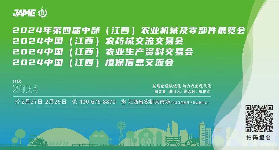 由江西省农业农村厅、南昌市人民政府、江西省农业科学院共同支持,由江西省农业机械化协会、江西省农机大市场共同主办的2024年第四届中部(江西)农业机械及零部件展览会将于2024年2月27日-29日在江西省农机大市场(内设江西国际汽车会展中心,南昌富山五路168号)举办。为深入推进农业生产全程机械化,促进农业增产、农民增收,推动农业绿色发展,加强农业生产上下游企业交流与合作,现诚邀广大农机、农药、种子、化肥、植保等相关生产、加工、经销、服务等产业链相关企业参展、参会,全面展示江西及我国中部地区高效智能农业机械发展成果和农业农村高质量发展水平,加快推进农业强国建设。现将有关事项通知如下:(一)展会时间:2024年2月27日至29日( 2月 24日-26日布展,29日15:00后开始撤展)(二)展会地点:江西省农机大市场(内设江西国际汽车会展中心,南昌县富山五路168号)支持单位:江西省农业农村厅、南昌市人民政府、江西省农业科学院本届展会展览面积约6.5万平方米,参展企业约320家,展品范围覆盖农业机械、农机配件、农药、种子、化肥、植保机械、农业科技、农艺及相关上下游产业链。将通过集中展示、专场推介、对接交流、现场演示等,促进智能农机设备、农资产销对接和农业科技创新,为广大农业人士带来最新、最全的农业生产资料和科技应用,助力春耕备耕。(六) 2024中国(江西)农机及农资国际对接交流会(八)2024年“金穗杯”农机、农资品牌网络评选活动(九)“秀出自我,机动他人”全国优秀农机视频进江西活动(一)展位分为室内标准、室内净地、室外净地等,展会招商及布局工作请与展会承办单位:江西友擎品牌管理有限公司联络洽谈。(二)参会、参观企业、个人于2月7日前提交报名回执至会务组。联系电话:400-676-8870 E-mail:602743077@qq.com