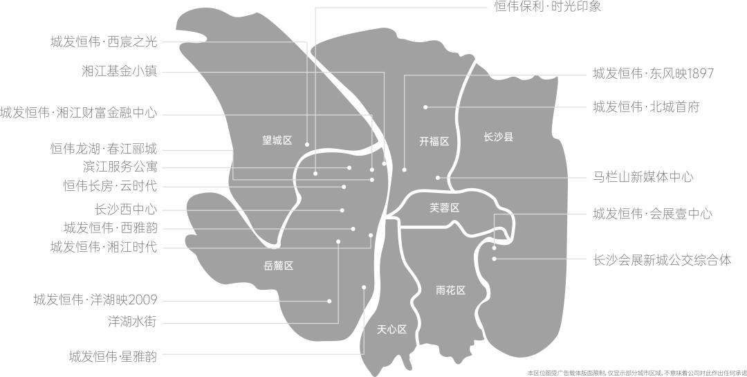 ·长沙城发恒伟置业:成立于2012年11月,注册资本12亿元,是长沙城发集团的全资子公司,旗下唯一地产开发主体,主要经营范围包括房地产开发、房地产经纪以及酒店、旅游、实业的投资等。深耕长沙近10载,先后建成了城发恒伟·湘江FFC、城发恒伟·洋湖映2009、城发恒伟·东风映1897等一批兼顾社会责任与市场口碑的项目