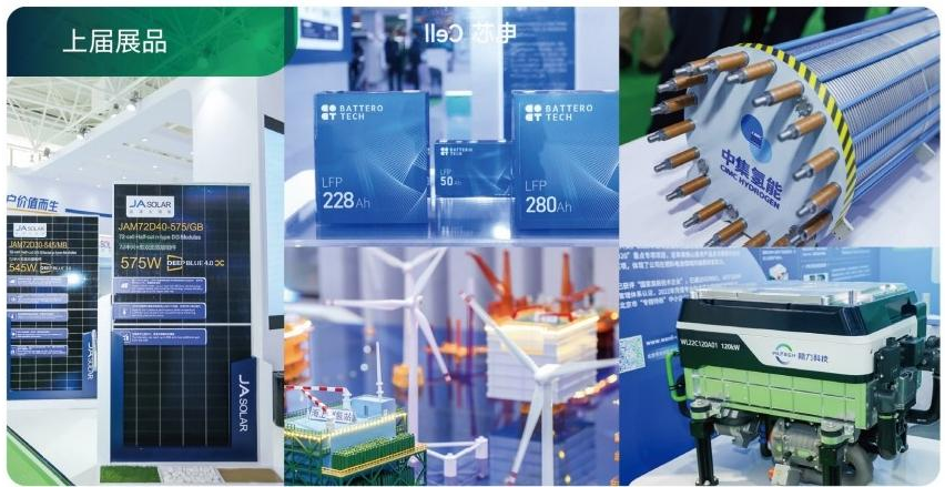 上届参展商数量有315家,其中代表性参展商有国家电网、国家能源集团、国家电投、中国电建、中国 能建、中车、中节能、天合光能、晶澳太阳能、TCL中 环、正泰新能源、晋能科技、华为、比亚迪、宁德时代、亿纬储能、瑞浦兰钧、美克生、海辰储能、新源智 诸、亿华通、中集氢能、阳光氢能、隆基氢能、天合元 氢、美锦能源、东芝三菱、中集来福士、考克利尔竞立、双良新能源、荣创新能、天海工业等。