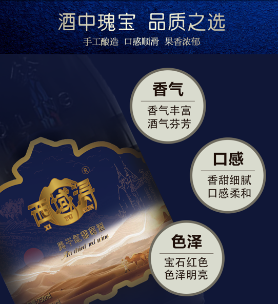 不得了西域浔系列·甜红(风干经典款)葡萄酒,酒体晶莹剔透,滋味甜美、柔和香润,尤其是干果风味非常显著,特别受年轻消费者欢迎!品尝过它的消费者纷纷表示,它的口感和风味都令人难以忘怀,赞誉其独特魅力和口感。
