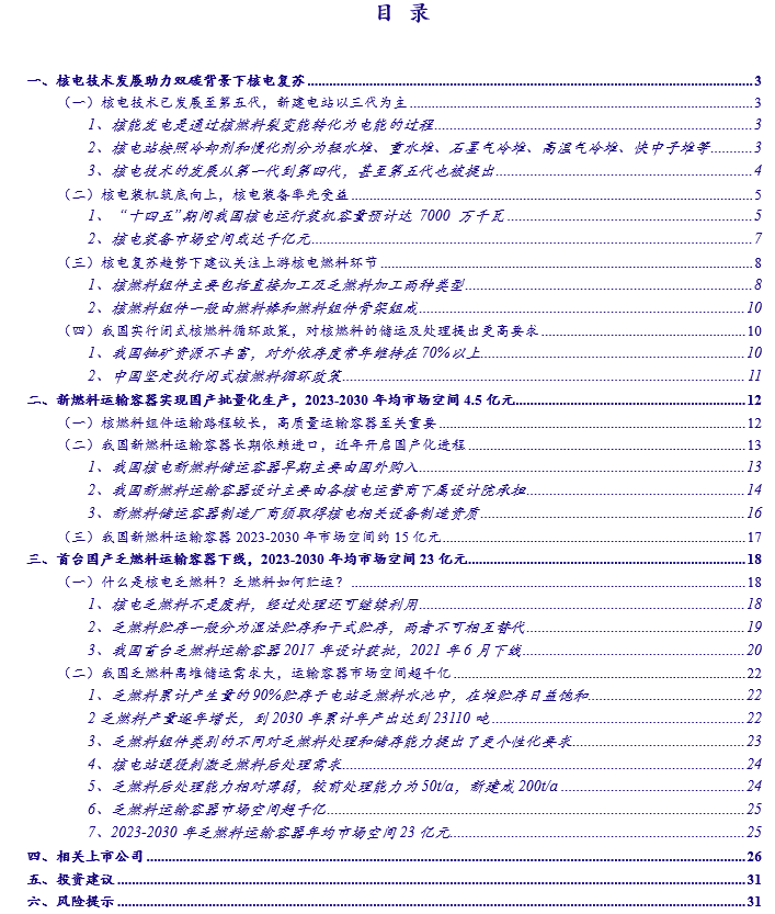 本文摘自报告:《核电装备行业深度-核电燃料储运设备国产化将迈入加速期》