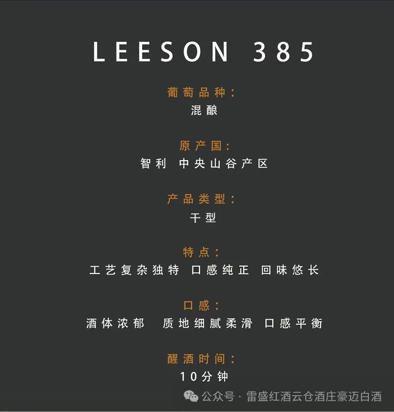 雷盛385智利干红葡萄酒