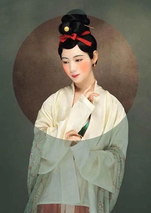 北宋妆容复原,黑色娥眉、略浓的胭脂、朱染下唇,梳云尖额角