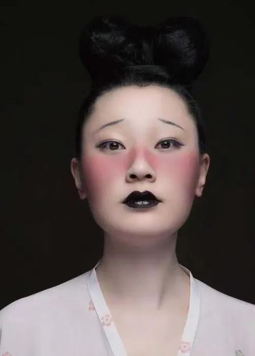 根据白居易《时世妆》的妆容演绎,八字眉、乌膏注唇、晒伤赭面妆