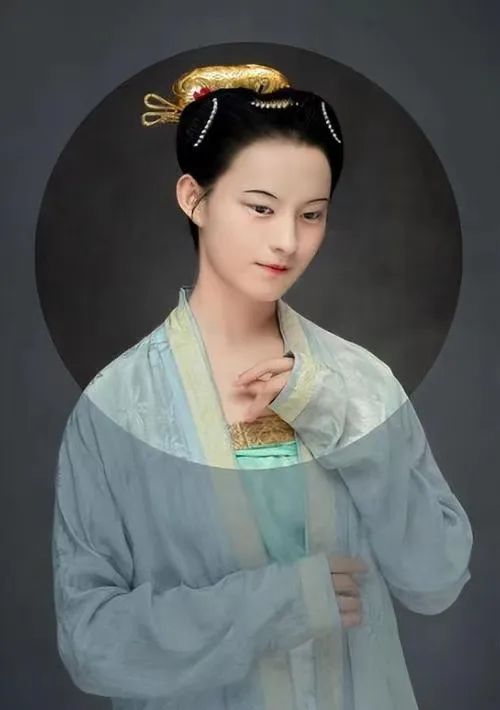 武则天生于武德七年(公元 624年),贞观十一年(公元 637年)十四岁时入宫,当了十二年才人,太宗去世后随没有子女的嫔妃们一起入感业寺为尼。贞观距唐代开国不远,女装风格与北朝后期、隋类似,崇尚纤细的身形,妆饰相对保守、简单,尚未形成夸张浓烈的风格。此时的宫中嫔妃,应该多妆面浅淡,略施粉黛,朴素而清秀,梳着高髻,身穿大袖襦衫,束着裙腰极高的长裙;而身份较一般的女性,则可能更多穿着窄袖衫子和间裙,发型以各种鬟髻为主。