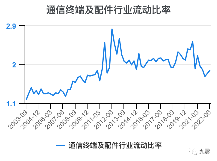 行业流动比率对比之三:电力设备及新能源、电子、石油石化、计算机、轻工制造、通信、钢铁、食品饮料