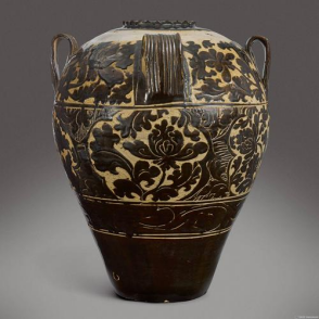 这反映了酒度的不断攀升,而主要原因在于制曲工序的提升。唐慎微的《证类本草》记载:“今江浙、湖南北又以糯粉入众药,和为娴,曰饼子酒。”这已经与现在的小曲很相像了。另外,朱翼中的《北山酒经》记录了当时十三种主流酒曲的制法,这都说明了制曲技术的进步。1997年在广州西汉南越王墓博物馆,展览了一件黑釉剔花大罐,属于典型的西夏灵武磁窑堡窑作品。专家认为,其“下部有一小孔,上斜,可插管作流……应为酿酒器”,很可能就是文献中酿造火迫酒的实物。