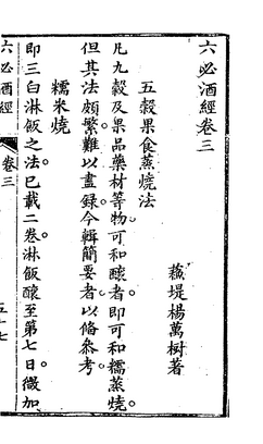 从目前国人的饮酒观念里,我们似乎已经很少再提及烧酒,取而代之的则是中国白酒。其实,白酒是上世纪50年代才被着重启用的专属名称,是新中国成立后酿酒行业的标准化用语,即以颜色标识来划分的酒类产品,将谷物酿制的中国蒸馏酒定义为“白酒”。但在此之前,烧酒原是中国蒸馏酒的代名词。比如,清朝的酿酒专著《六必酒经》,书中记载了多个品种的烧酒,像糯米烧、粳米烧、小麦烧、米麦烧、大麦烧、包芦烧、粟米烧、高粱烧、荞麦烧、乌禾烧、甘薯烧、莲子烧、芡实烧和葡萄烧等生产工艺。《六必酒经》中对烧酒原料的论述