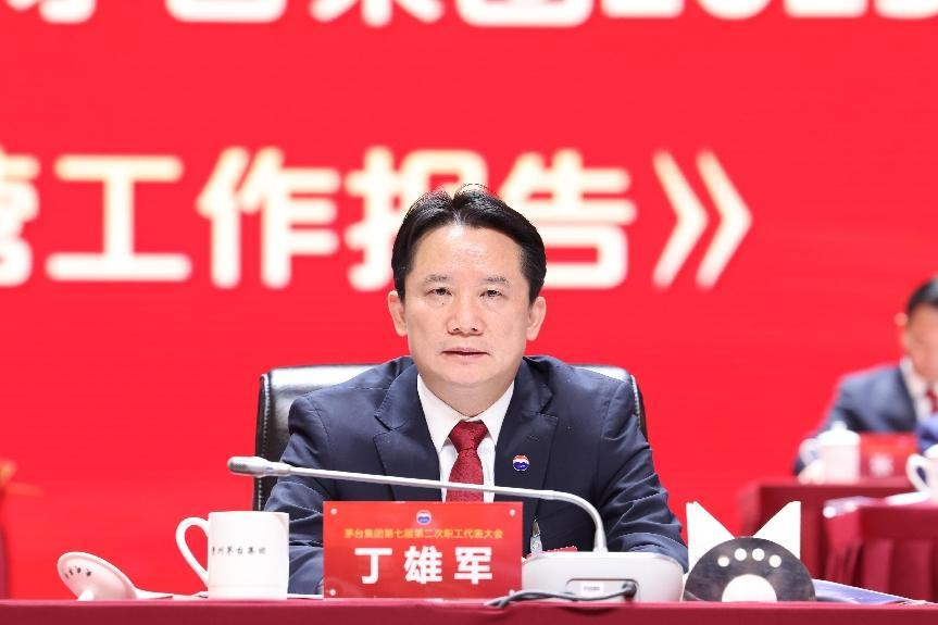 茅台集团党委书记、董事长丁雄军,党委副书记、总经理王莉,老领导季克良,集团领导李静仁、卓玛才让、滕建勇、段建桦、万波、刘刚、涂华彬、王晓维、崔程,外部董事张瑞彬在主席台就座。茅台集团党委副书记、工会主席高山主持会议。