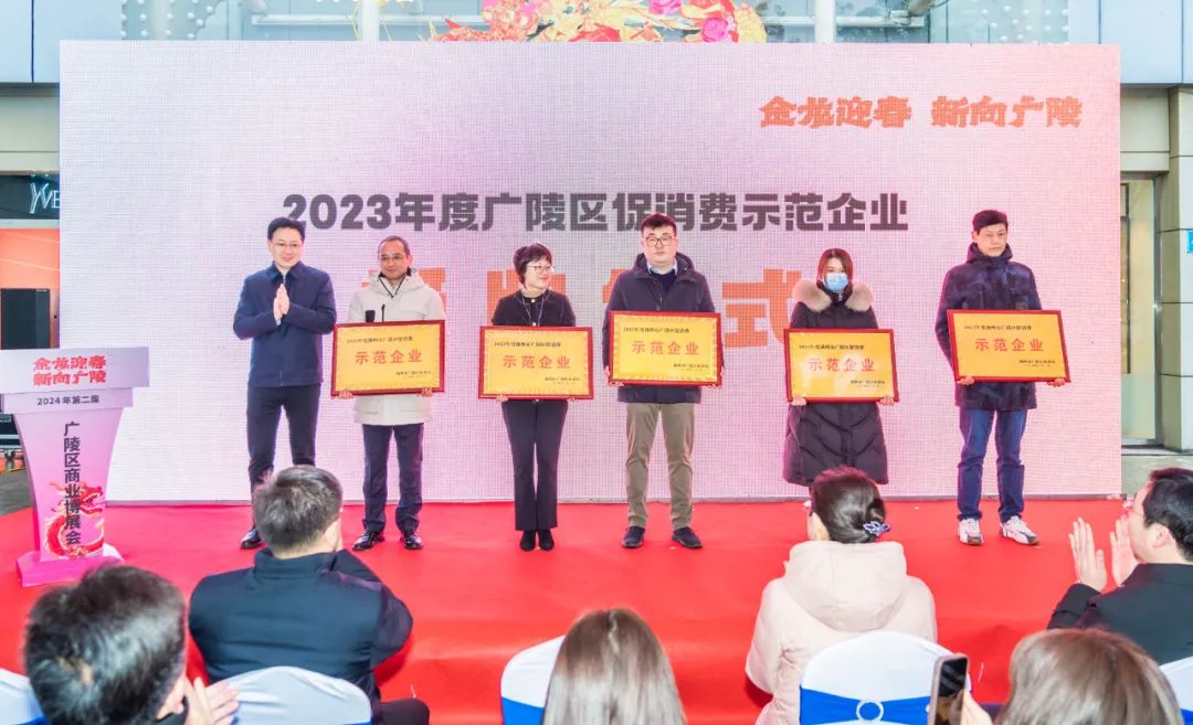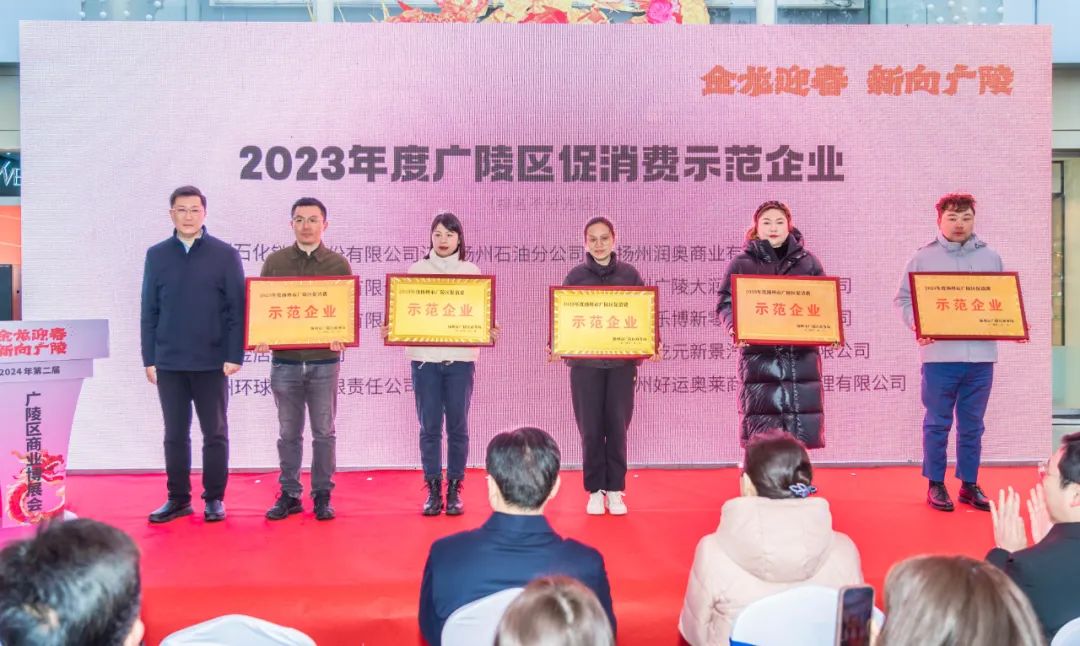活动见证了第二届广陵区商业博展会正式启动。王志海、郎俊向荣获2023年度广陵区促消费示范企业称号的各单位授牌。张磊、王刚作商家代表发言。