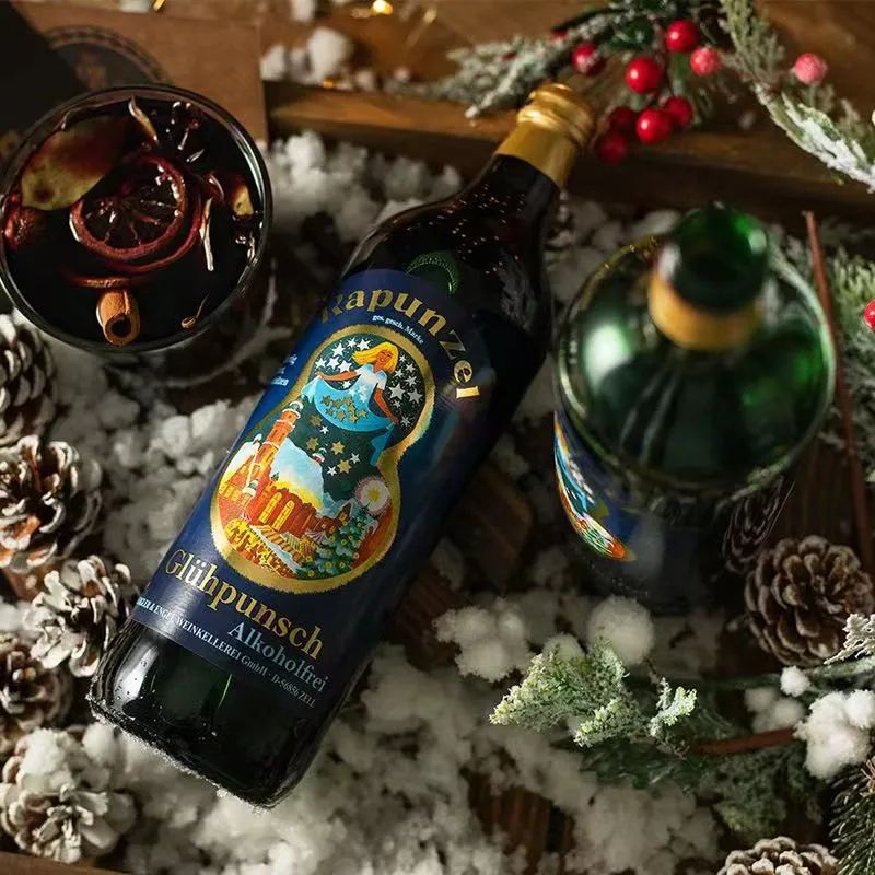 德国的 Rapunzel Glühwein,也是我们一年一度热红酒老朋友了。Glühwein是德语,约等于英文中的 Mulled Wine,热红酒的传统,就是起源于欧洲。Glühwein 是两个德语词的组合,glüh 来自于 glühen,意为加热,wein则是葡萄酒。连在一起,就成了德国人每年必喝的 Glühwein 了。甚至在一些地区的传统里,圣诞节的时候,这是市场上唯一提供的酒精饮料。每逢冬季,只要走在欧洲大大小小的集市里,你就能发现 Glühwein 的身影——在圣诞市场上,这样的热红酒用小火保温,再倒入温热的杯子里,分享给顾客。要喝的时候,再加入一点点橙子利口酒,就是纯正圣诞味道了。不过,司机们、孕妇们、不爱喝酒的同志们,也不至于错过它——这款无酒精热红酒,采用了酿酒葡萄新鲜榨汁,再后期调入浓郁温暖的香料风味,不会让谁缺席节日气氛。没有酒精,没有负担,入口香甜顺滑,葡萄酒单宁的酸涩拜拜,只有热情的肉桂、丁香、迷迭香味道扑鼻而来。木质香调搭配多汁水果,单纯又迷人。德国进口长发公主热红酒