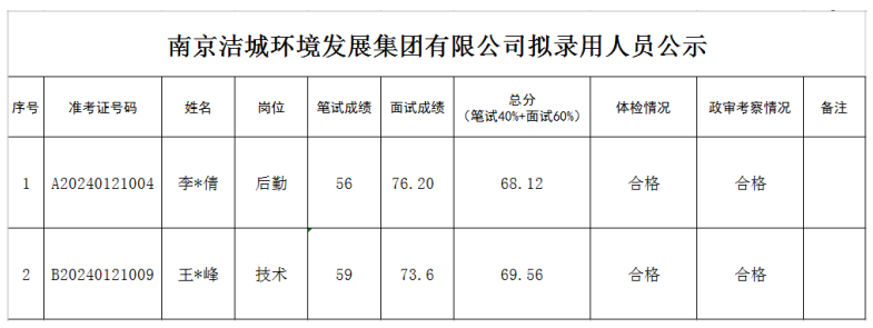 根据《招聘简章》内容,经笔试、面试、体检、政审程序,以下两名同志(名单见下表)符合招录条件,拟确定为聘用人员,现予以公示。