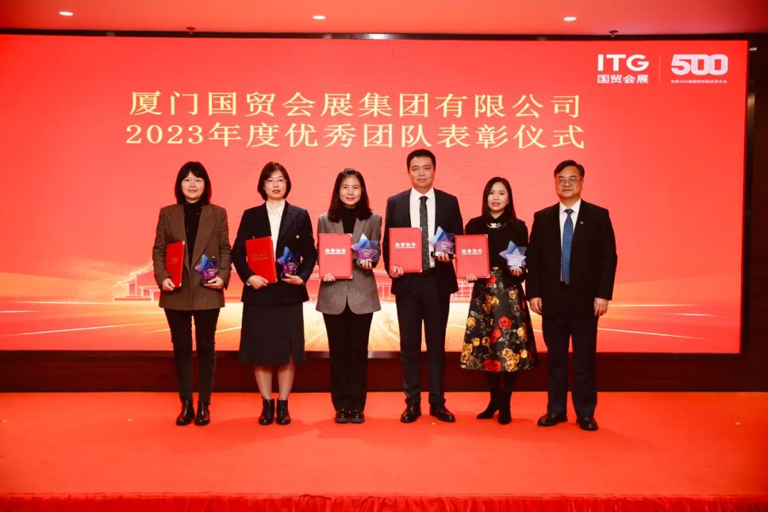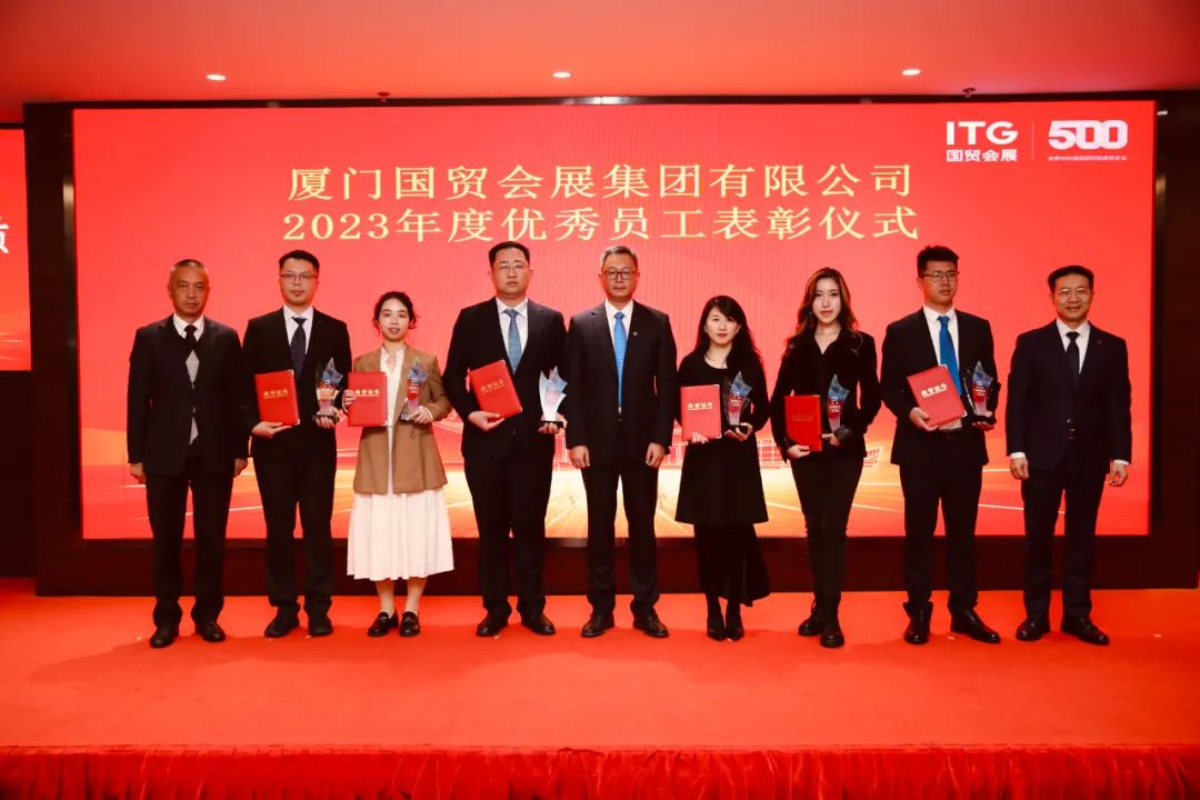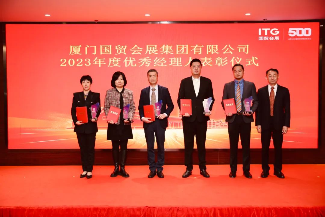 会议表彰了国贸会展2023年度优秀员工、优秀经理人和优秀团队。