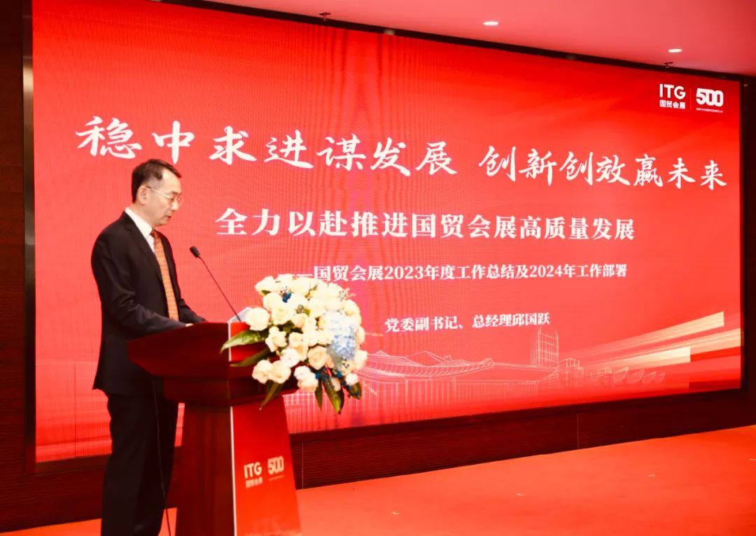 国贸会展党委副书记、总经理邱国跃代表经营班子作主题为“稳中求进谋发展 创新创效赢未来”的年度工作报告,对2024年公司经营管理工作进行部署: