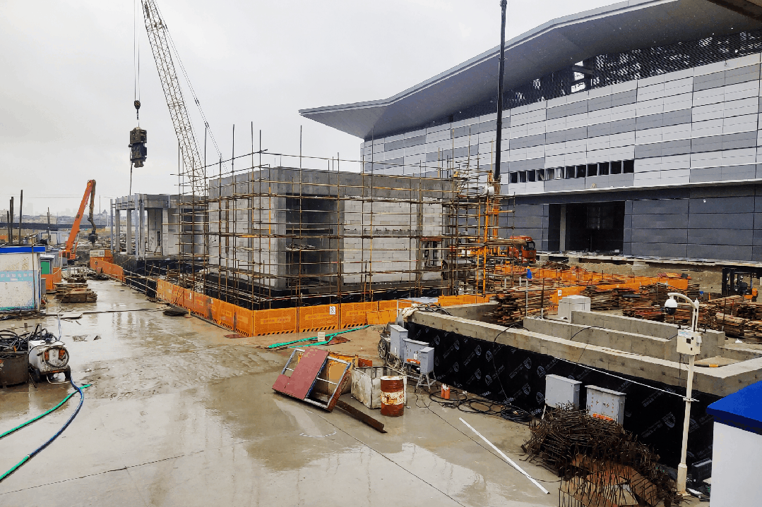 110kV变配电是大会展中心建成后办展运营的重要配套保障,也是一期项目竣工验收的关键线路。110kV会展专变本体的建设紧跟大会展中心建设步伐,于8月1日取得施工许可证当天即正式开工,现场平均每天达70多名桩基工人施工作业,8台桩基日夜运转,混凝土工程车进出接连不断,全速开启“五加二”“白加黑”模式,全天24小时不停歇,如火如荼加快推进。