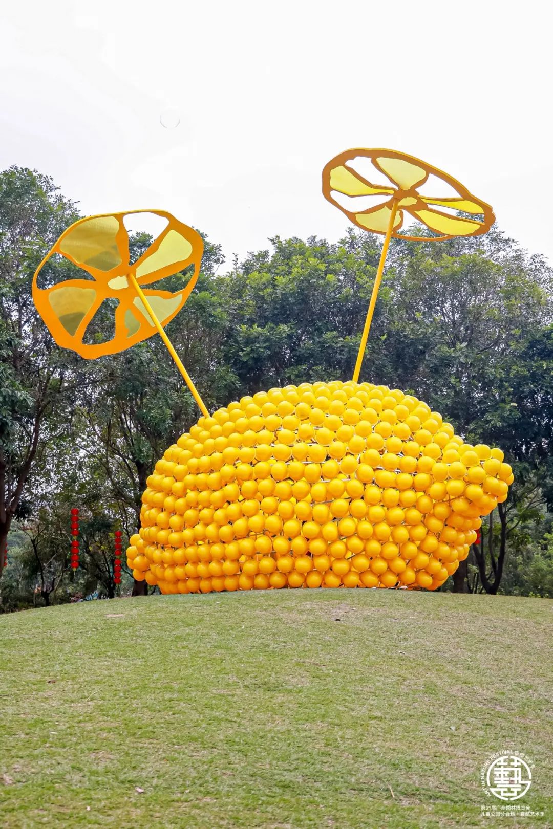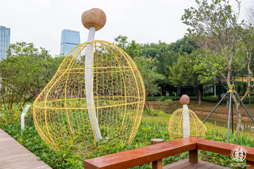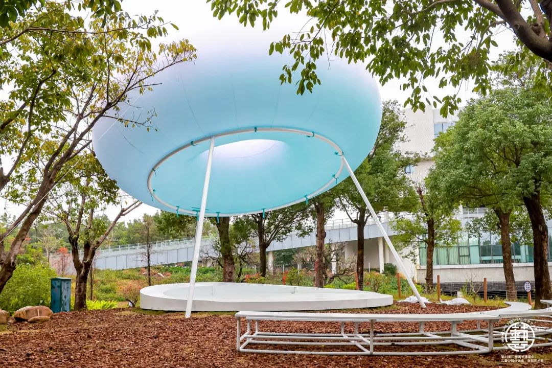 “巨甜甜”、“宜母子之光”、“林间”、“幸福的元素”、“瞧!这是一个大屋顶”、“菌世界·黄裙竹荪”、“会跳舞的玩具屋”等7组艺术装置作品正式“亮相”。