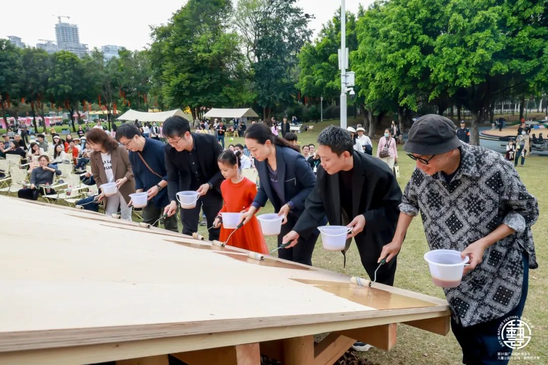 2月1日下午,在市儿童公园北草坪,第31届广州园林博览会“自然艺术季”启动仪式正式开始。艺术家与儿童代表,通过“粉刷”房子的形式,为启动仪式“剪彩”。