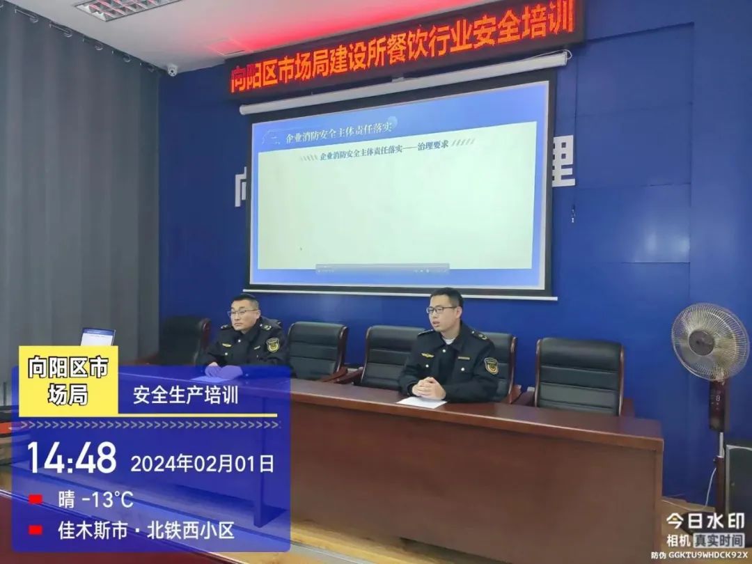 2月1日,向阳区市场局组织召开餐饮从业人员安全生产培训会议,会议邀请建设市场所、光复市场所辖区内餐饮从业人员参加。