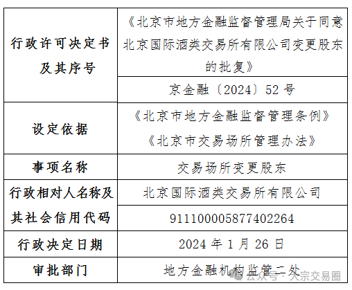 北京市金融局:关于同意北京国际酒类交易所有限公司变更股东的批复