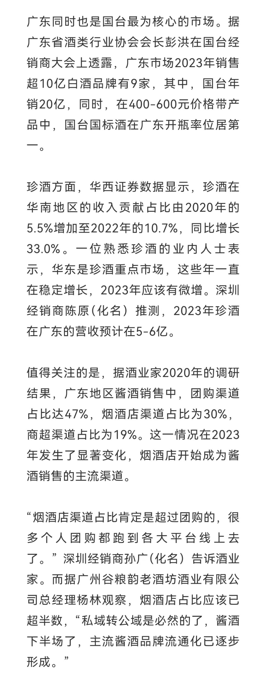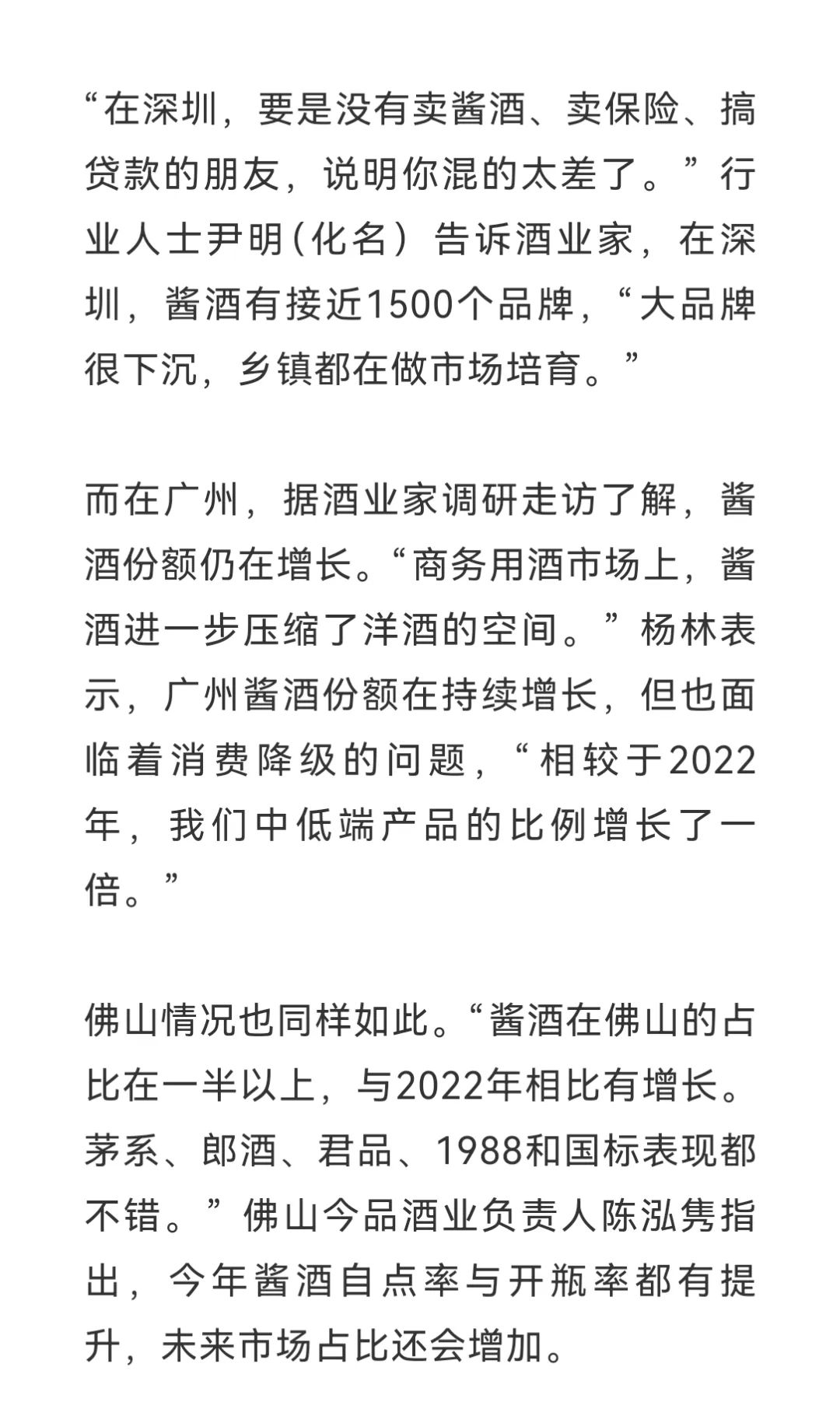 2023年,面对库存高压与利润缩减,酱酒热回归理性,在此背景下,酱酒核心市场的广东正在发现哪些变化?近期,酒业家调研深圳、广州、佛山、东莞、惠州、汕头、河源等10余城市80+酒商,了解广东酱酒市场的真实现状。