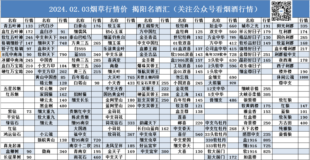 ☀ ,致力于发布揭阳当日行情价。点击上方名酒汇关注每天行情