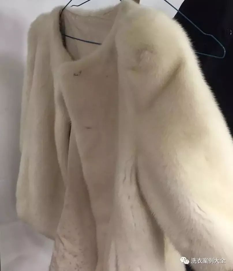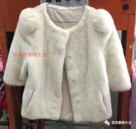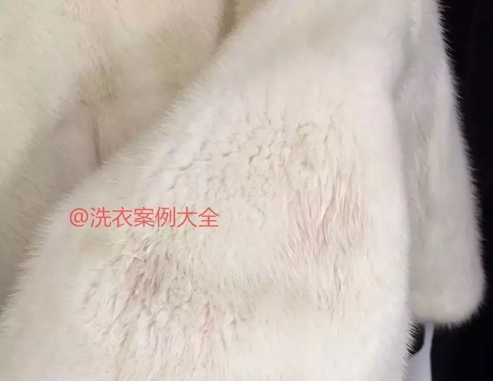 但是,不是所有的衣服可以适合采用水洗、去渍、或者彩漂解决的,因为红酒不一定都洒到普通衣服上,要是洒到貂皮大衣上呢,你想怎么 解决呢? 红酒其实具有代表性的鞣酸类污渍,很多污渍与红酒类似,比如茶渍、咖啡渍、青草渍、果汁饮料等,沾到裘皮大衣上都是不容易去除的污渍。主要因为裘皮大衣只能干洗,而这些污渍只能水洗解决,当遇到冲突的污渍与清洗有别时,洗衣店到底应该怎么解决呢? 节日期间裘皮衣物沾到红酒,是再正常不过的事情了。对于顾客来说,沾到污渍清洗不掉就意味着裘皮报废了,穿着极其的难看,收费多少无所谓,主要清洗干净才重要,所有对于很多洗衣人来说,收费又是一个纠结的事情。对于裘皮普通清洗方法,一般是短中长标准执行,也就是短款380,中款450,长款560,对于沾染红酒特殊污渍,到底应该加钱洗涤吗?加钱洗涤后到底能不能洗涤干净呢? 经过西施客洗衣技术研究工作室六人组的研究,对于白色裘皮沾到红酒清洗方法,可以采用如下7个步骤进行处理:工具准备:超市购买白毛巾一块,橡胶手套一副、购买试剂类双氧水一瓶;记住是试剂类的,不是药店卖的5%的双氧水,这个双氧水是无效的。试剂类就是做实验使用的,也是工业类的双氧水,各地方化工商店都有销售,一瓶也就是20-30元左右。操作是必须戴上橡胶手套,因为工业试剂类双氧水浓度比较高,对皮肤有严重的灼伤风险,所以使用双氧水必须遵守操作安全规范。双氧水在使用时,基本上有两类使用方法,一种就是擦拭操作使用,一种就是热水稀释使用。对于衬衫或者羊绒衫上面的红酒与咖啡,我们可以使用80度热水稀释后,放入羊毛衫进行漂除后就污渍。对于裘皮就不能采用此类方法,因为裘皮法沾水使用。只能使用擦拭解决方法。对于红酒不严重的裘皮来说,可以用热水把双氧水稀释20:1的比例,20份热水兑1份双氧水,如果效果不好可以加大勾兑比例,比如10:1或5:1等等。使用纯白棉毛巾蘸稀释的双氧水,对红酒部位污渍处进行擦拭,切记只能浅表层擦拭,禁止药剂浸湿皮板避免发硬。擦拭次数大概为3-8次,直至红酒能够彻底消失为止;建议毛巾浸湿之后简单拧一下水分,避免浓度水分过大穿透皮板,容易发生皮板发硬事故。反反复复擦拭数次之后,等到红酒彻底消失后,再使用另外一只毛巾蘸清水,对刚刚处理过的部位,进行浅表层的进行清洗1至2次,预防残留的双氧水药剂,对皮毛造成严重的腐蚀与伤害;切记,擦拭之后的清洗,非常非常的重要!裘皮大衣就怕沾水,沾水之后就怕阴干,因为阴干不仅变色,还会出现皮板抽缩与发硬,所以处理完毕之后理解干燥非常重要。可以使用吹风机冷风或低温,对擦拭的皮毛进行吹干即可,一件蘸有红酒的皮草,就这样被你征服解决了,看图所示,红酒污渍无影无踪。比如普通裘皮干洗我们收费560元,对于沾染红酒的裘皮大衣,我们至少加收100元,因为采购双氧水、以及处理风险与耗时问题,都是洗衣店正常的费用开支,所以对于特殊污渍的处理,收费100元并不为过,最终处理红酒大衣收费为660元。
