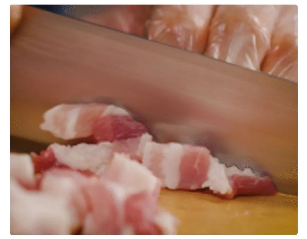 将五花肉去膘,切成1厘米左右的肉丁,大蒜剁碎;