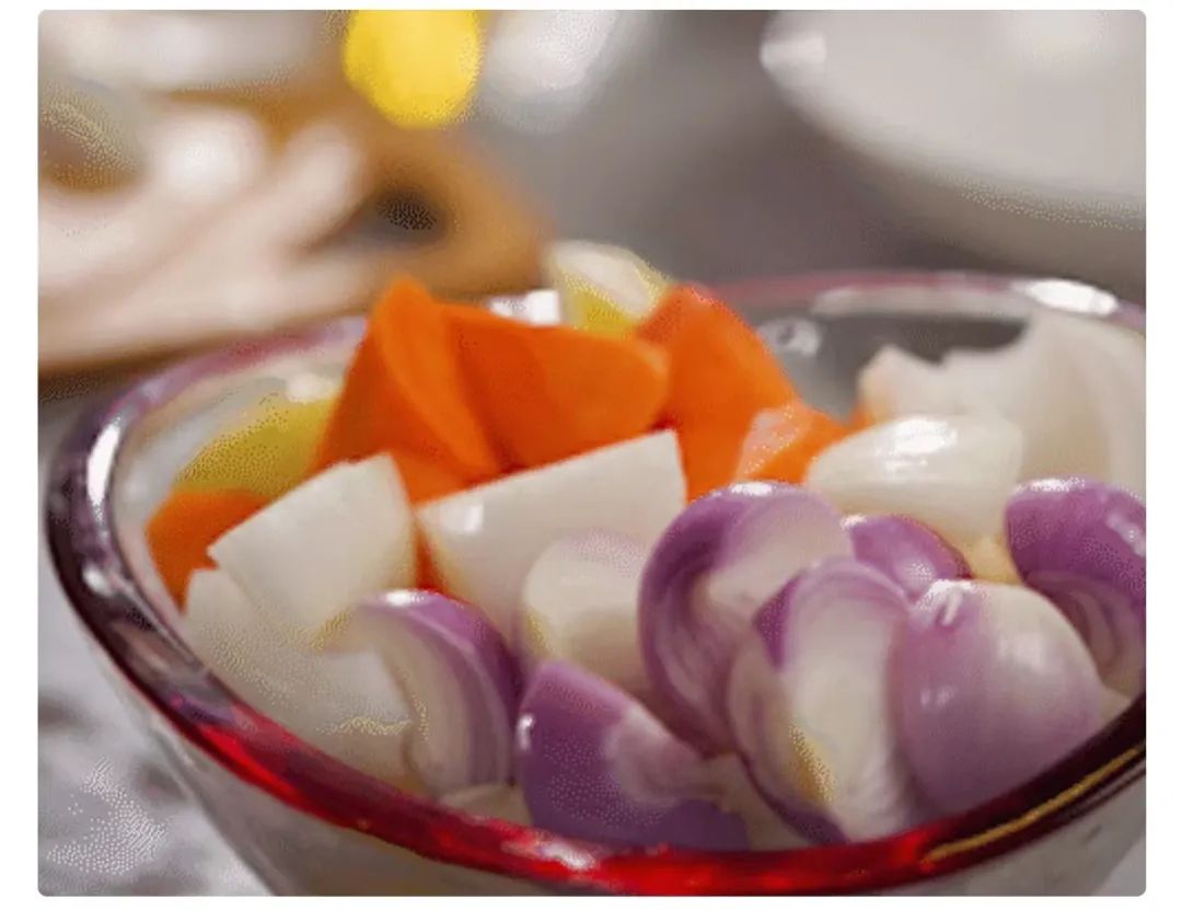 将刚刚用红酒煮过的牛肉与蔬菜一起放入烤盘,180度,烤2小时;